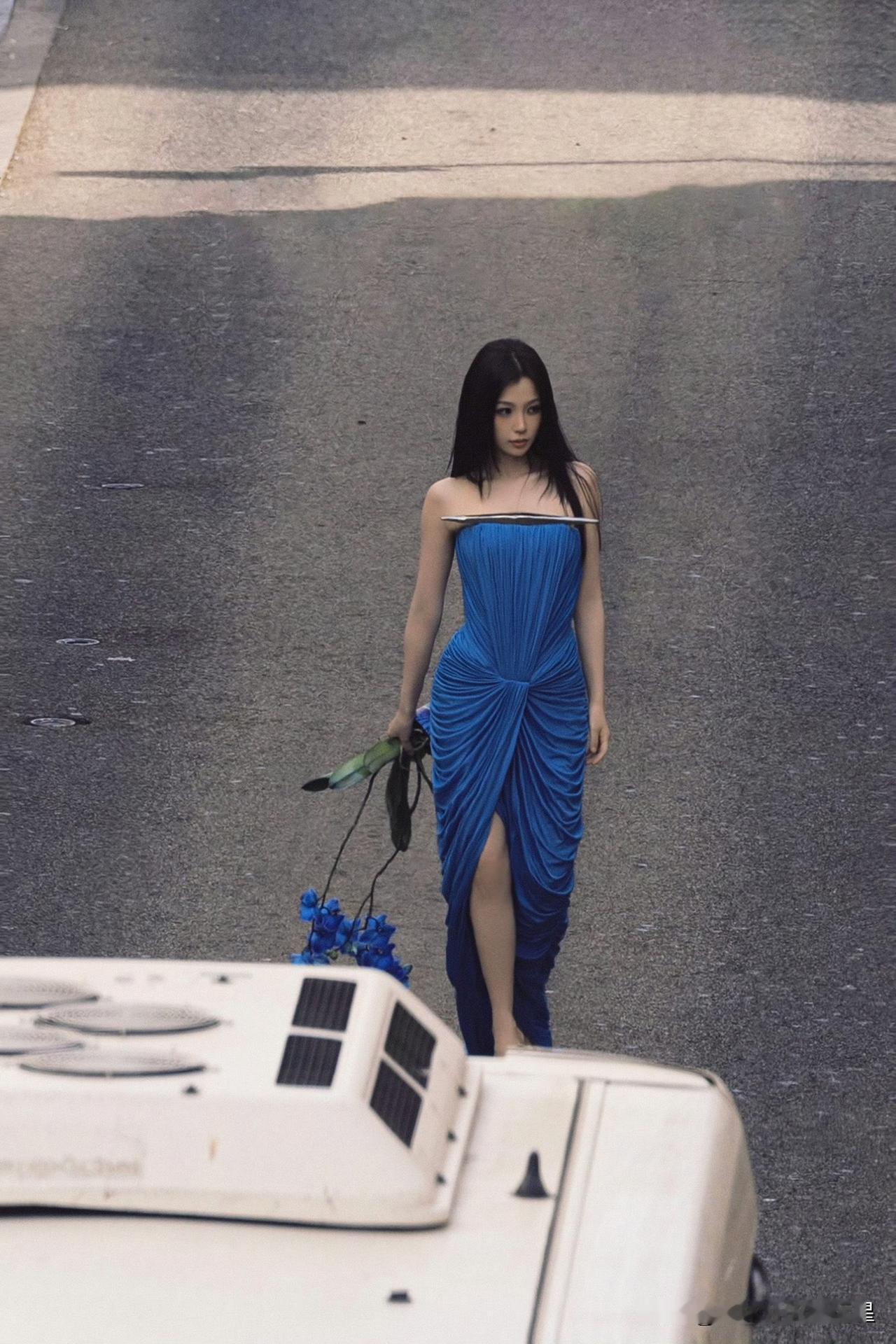 女神真的美晕了 克莱因蓝衬的女神更美丽了! 虞书欣湖蓝亮色长裙 @虞书欣Esth