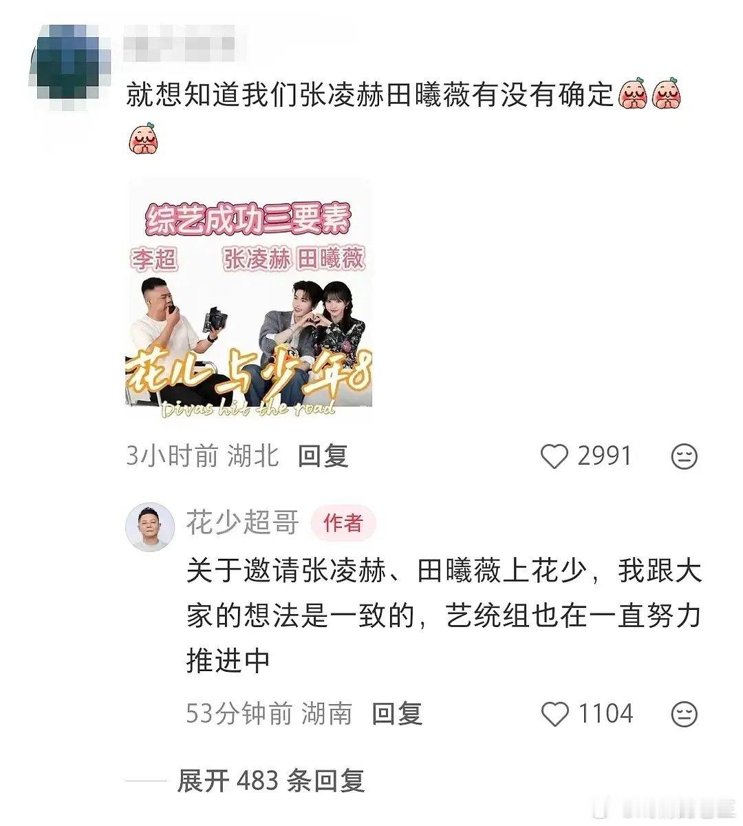 花少导演在约张凌赫田曦薇花少导演真的是好事做尽,不管成没成,但真的在认真听网友
