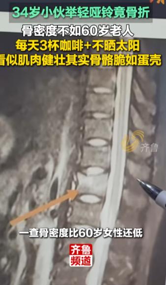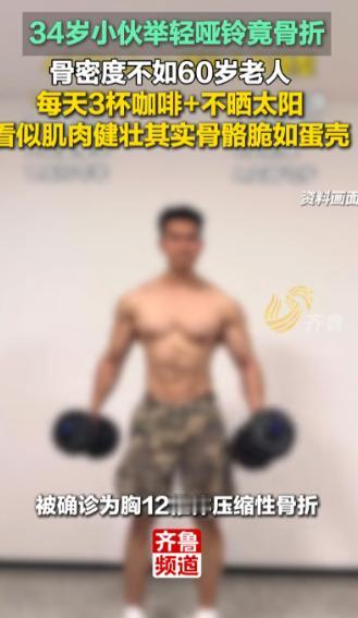 “悲剧还是发生了!”近日,浙江,一男子经常健身,看着很健康,却在健身房举哑铃时,竟然骨折了!去医院一查,发现他的骨密度比多数60岁女性还要低,后来才知道,男子几乎不晒太阳,每天还要喝3杯咖啡!网友:涨知识了!