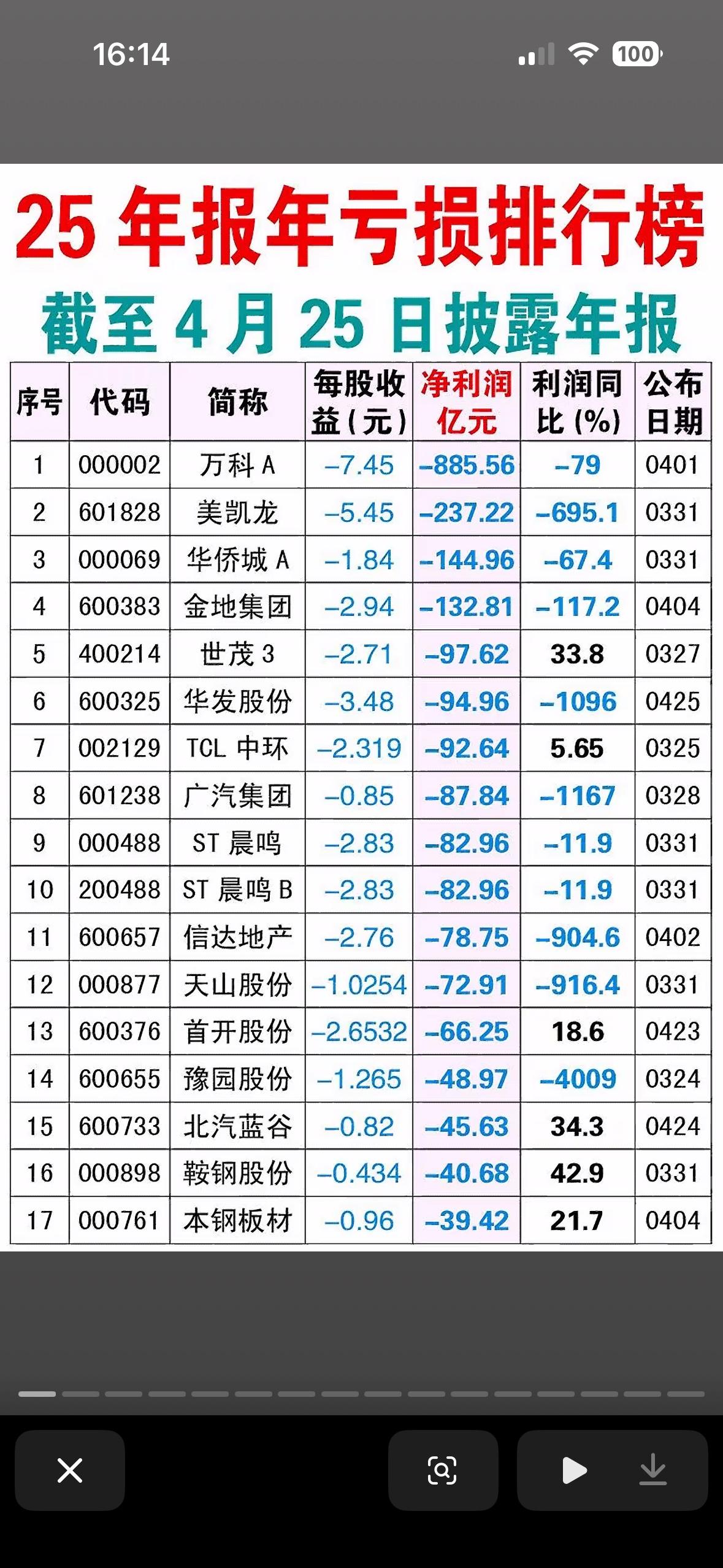 2025年年报亏损排行榜揭晓 2025年年报亏损排行榜揭晓,不少公司的业绩状况