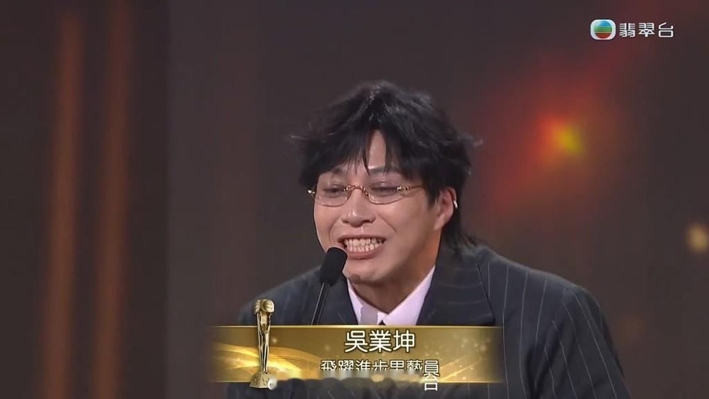 演戏事业迎来转机入行十六年,历经十次奖项提名,吴业坤终于在2026年初万千星辉颁奖典礼,凭借刑侦12、新闻女王2等剧集的扎实演出,夺得飞跃进步男艺员。领奖时激动落泪,坦言卸下多年压力,演艺事业迎来全新转机。