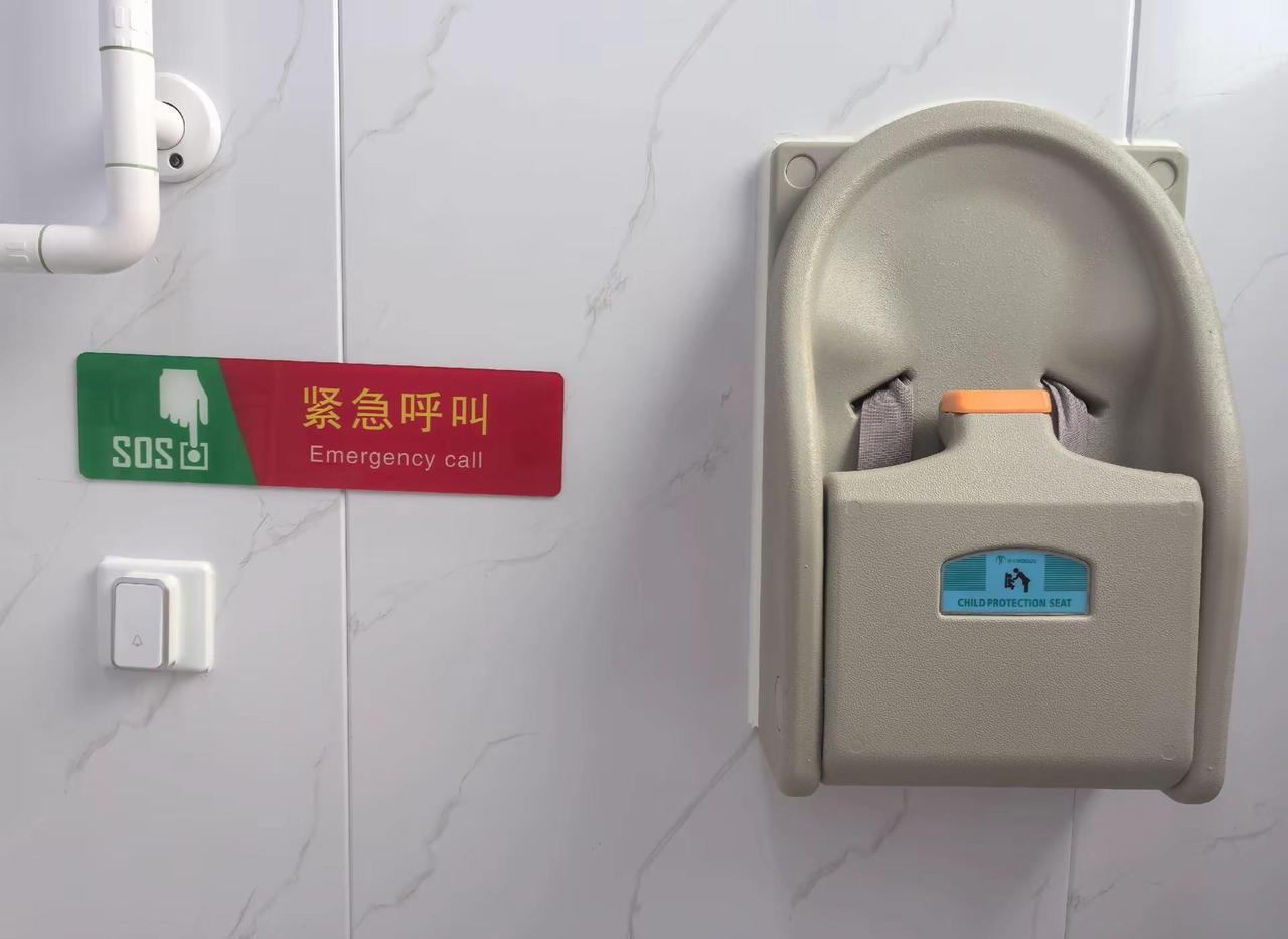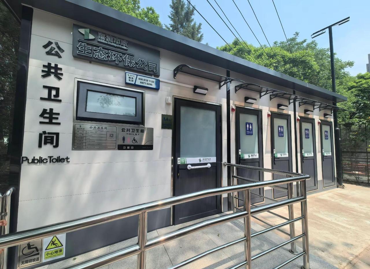 免费街边小公园里的公厕,安全感拉满。!无障碍坡道、紧急SOS呼叫、防滑防触电、母