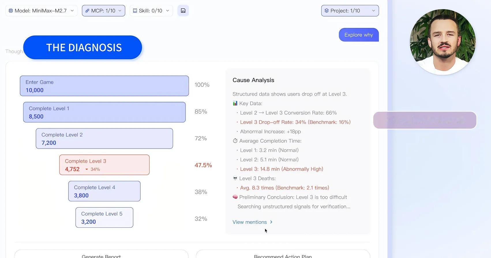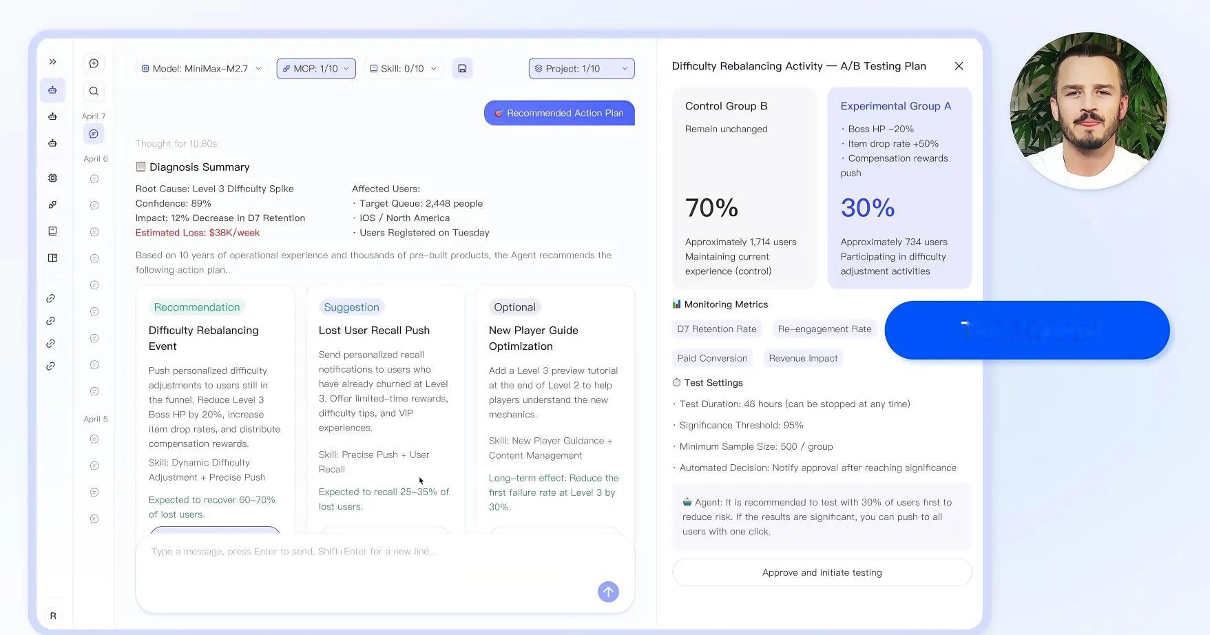 以游戏运营为例,我最近看到ThinkingAI刚发布的一个产品演示里有一个场景。