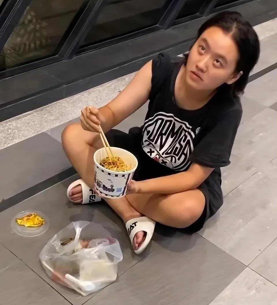 有人拍到她偷拿外卖、偷超市饮料,甚至和流浪汉共享一根香烟,曾经那个眼里有光的少女,早已消失不见。