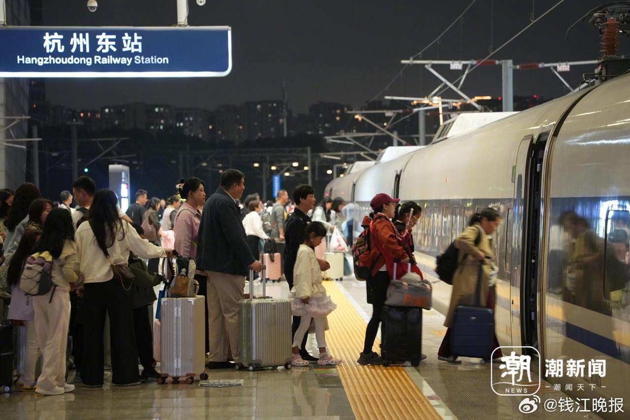 【全杭州的娃都出动了?#春假大军即将席卷全国#,铁路部门“五一”加开旅客列车98.5对】#春假出游大军占领了杭州东站# 4月25日晚,杭州火车东站,大人孩子一波接一波,杭州春假出游大军来啦!读者纷纷报料:“傍晚的火车站人山人海”“全是娃”“杭州东站进站排队排到门口”……