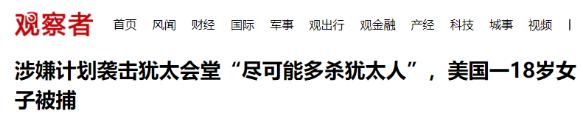 但事实是,这个18岁姑娘的疯狂计划,只是当下美国社会反犹情绪彻底失控的一个缩影。
