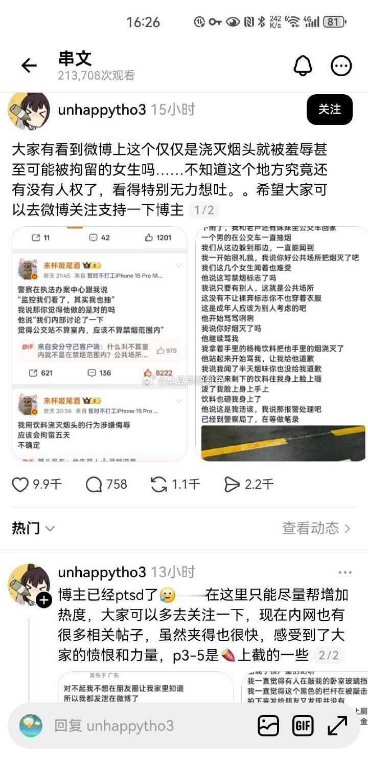 不知道大家还记得某个二次元赛博婚前平台不,最疯狂的时候,那群人顶着各种骂男的微博,然后来找atm机做男朋友。在经历几次特别有名的事件后,平台选择的是帮你查简历,删除那些黑历史。但因为她们出拳的角度,总是让人出其不意,所以它的查简历功能也一直很苦恼,一直清理不干净。再到后来这个平台就基本上凉了。翻译到最近这几次事件,第1个就是那个火车上月经那个事,虽然月经这个事火了,但是我们可以看得到,他在网络上控诉的那些事情,可以编成一本书,而且是一本每一集都高潮迭起的大戏。而且每一集都在控诉某些部门的不作为,毕竟什么谋杀啦,灭口啦,这些是闻所未闻,听所未听,但是因为他是某种不可定义的人。所以这件事。就这样了。第二一个就是前两天的这个所谓的老烟枪控诉吸烟的这个事,明显知道他就是来找茬的。但是某些部门为了某些所谓的平稳,低头咽下了这一口气。我只能说好事,继续惠只要惠下去,她就一定会惠成你想要的模样。