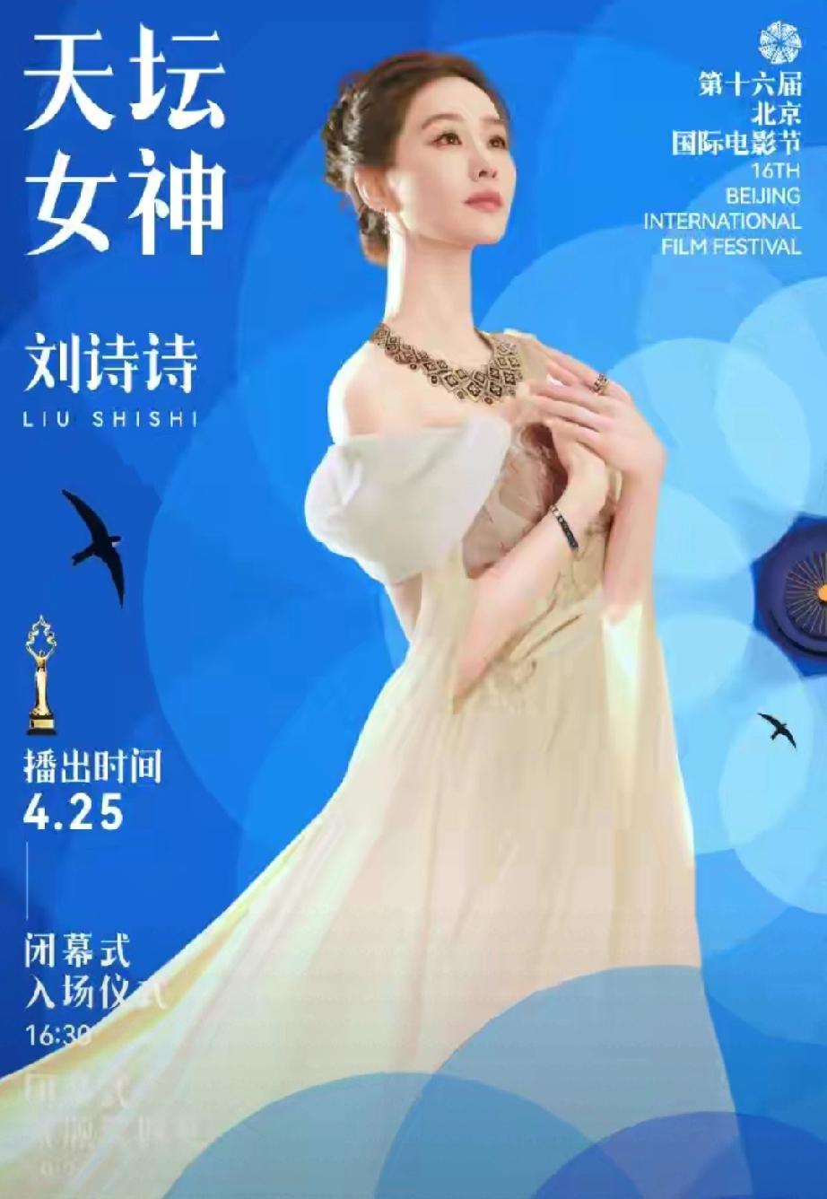 4月25日,第十六届北影节闭幕式,刘诗诗加冕重启后首位天坛女神,压轴登场惊艳全网。