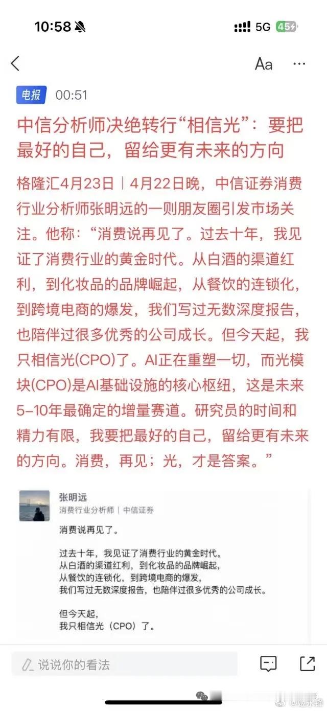 相信光!全网疯传中信消费分析师转行:把最好的自己留给更有未来的方向!中信证券正宗