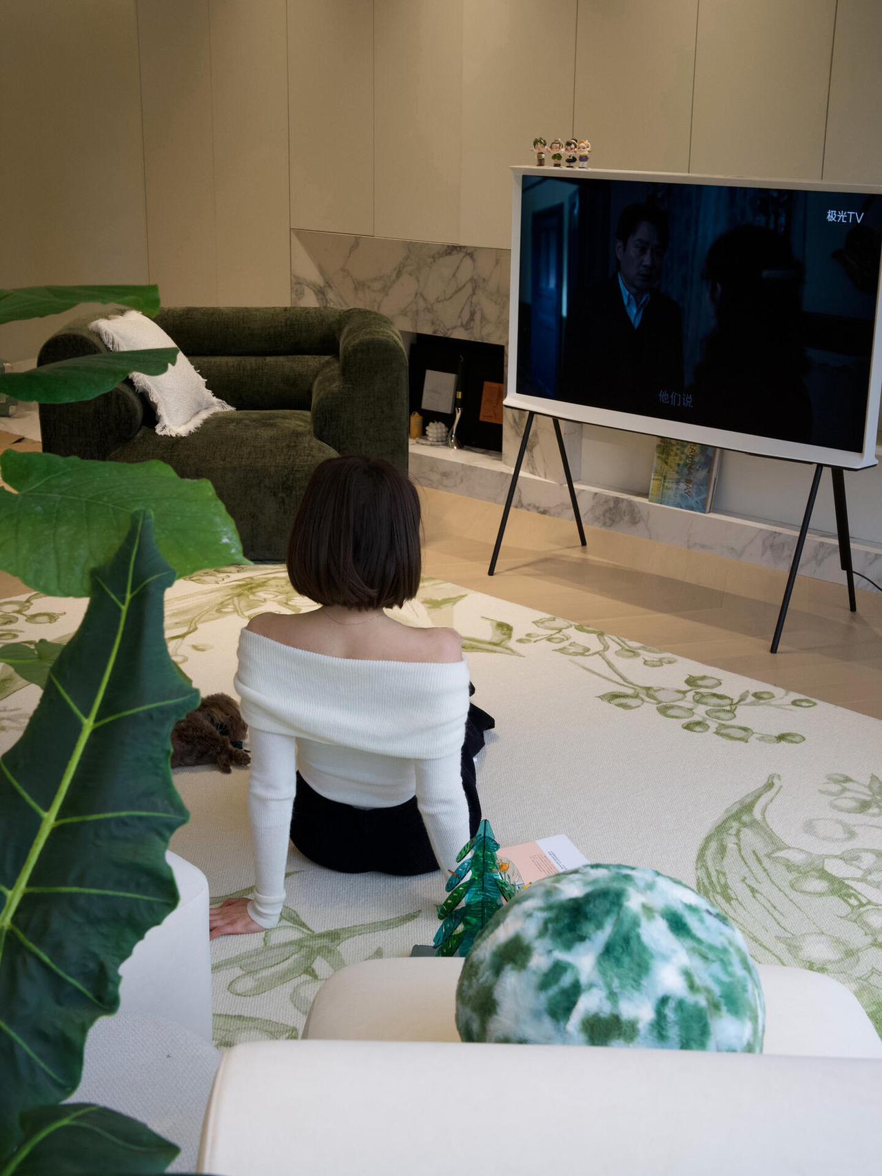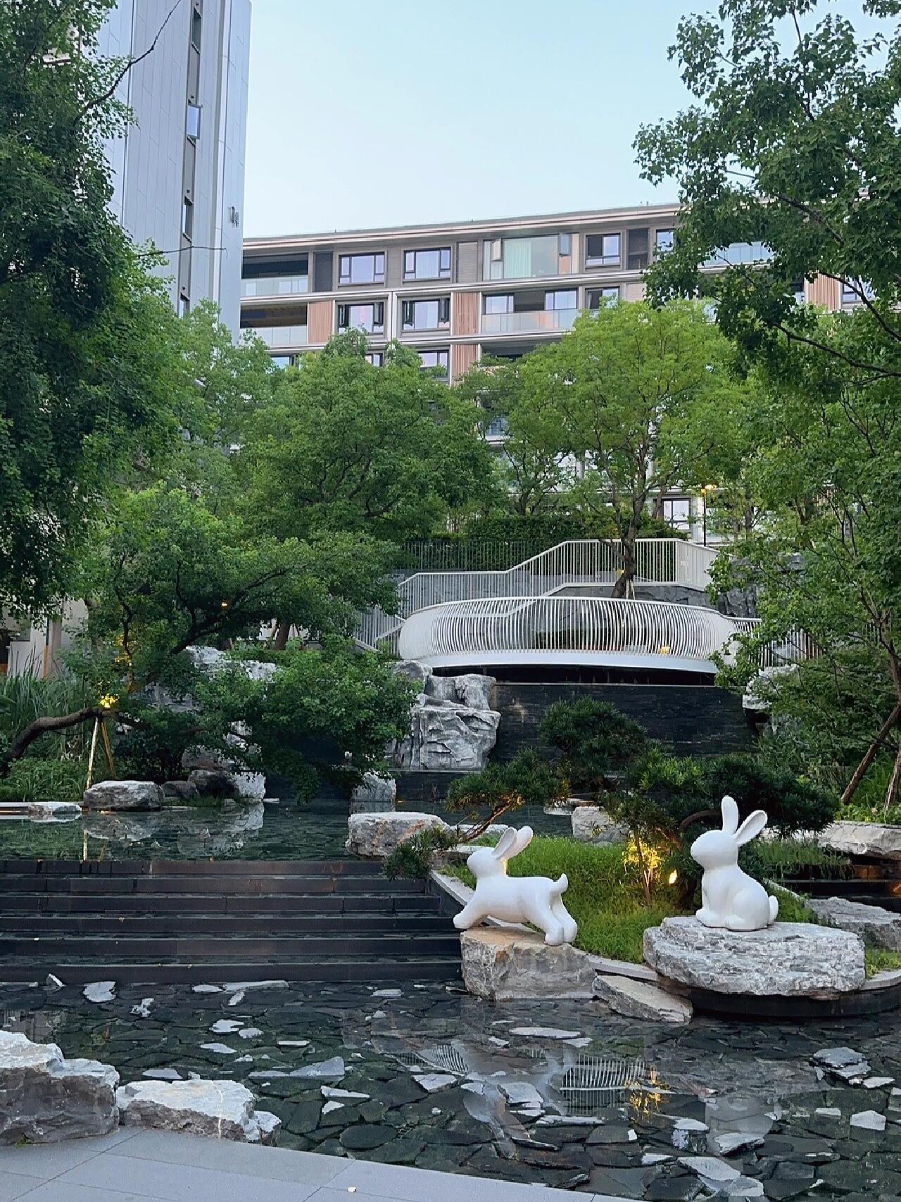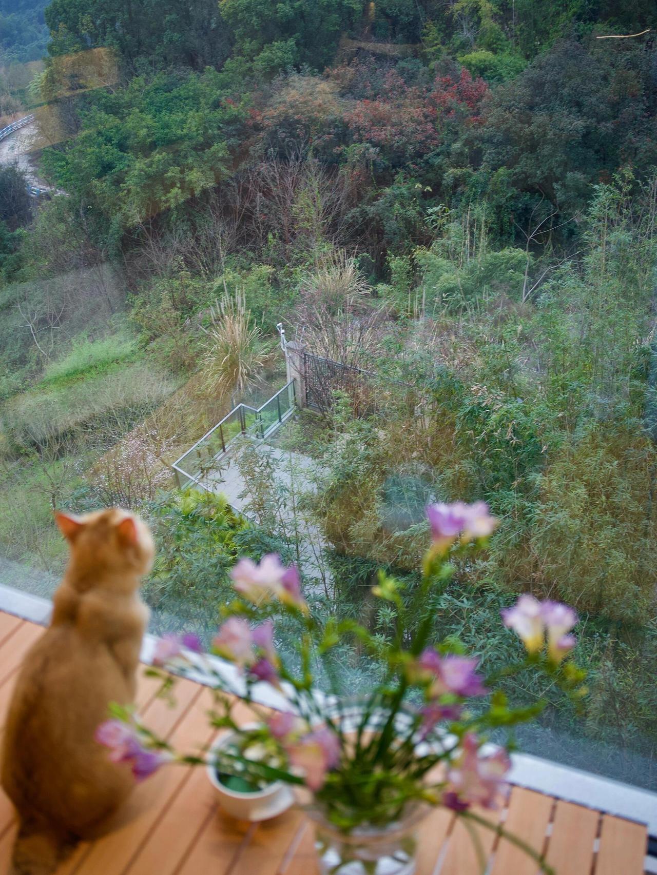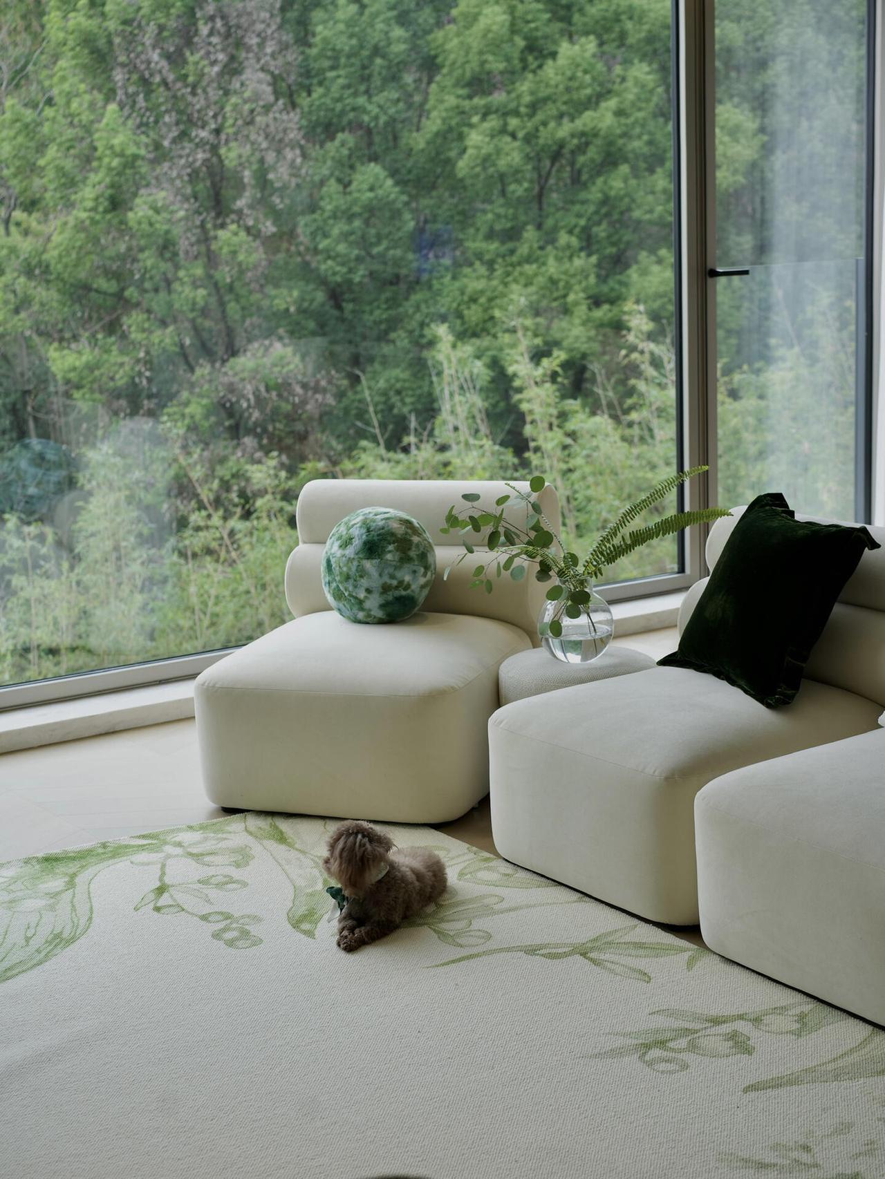 每个房间看出去的窗景都不一样,客厅和主卧满眼树绿,私密性也好,不用担心对面能看到家里,次卧、书房、衣帽间,也能看到树林,还带着点人气——不至于每个窗户都看不到一点烟火,不然就真像住在荒山野岭了。