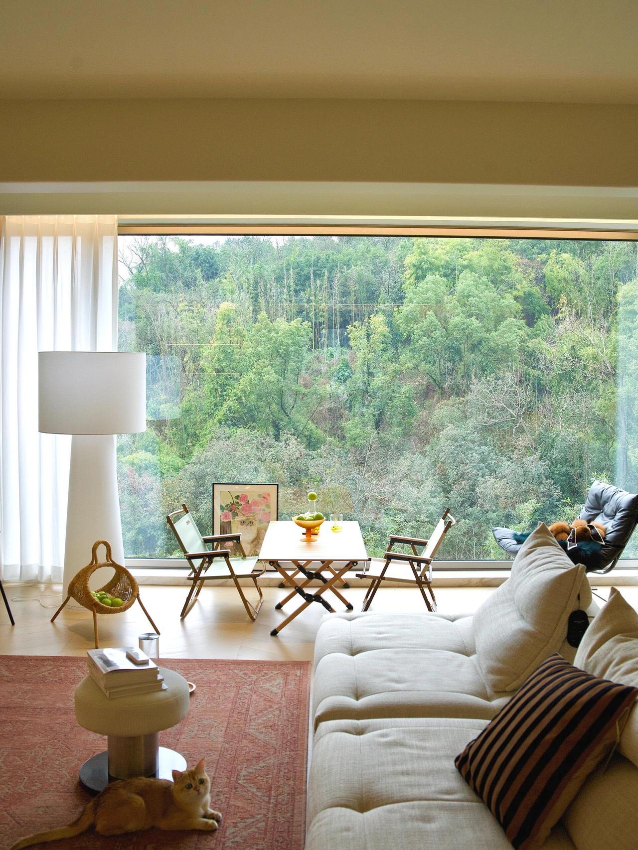房子不算什么豪宅,但我特别满意的一点是——不封阳台,对门就是公园,通风好,空气也好,摆张桌子和椅子,吃早餐、喝下午茶,山风吹过来,很巴适。