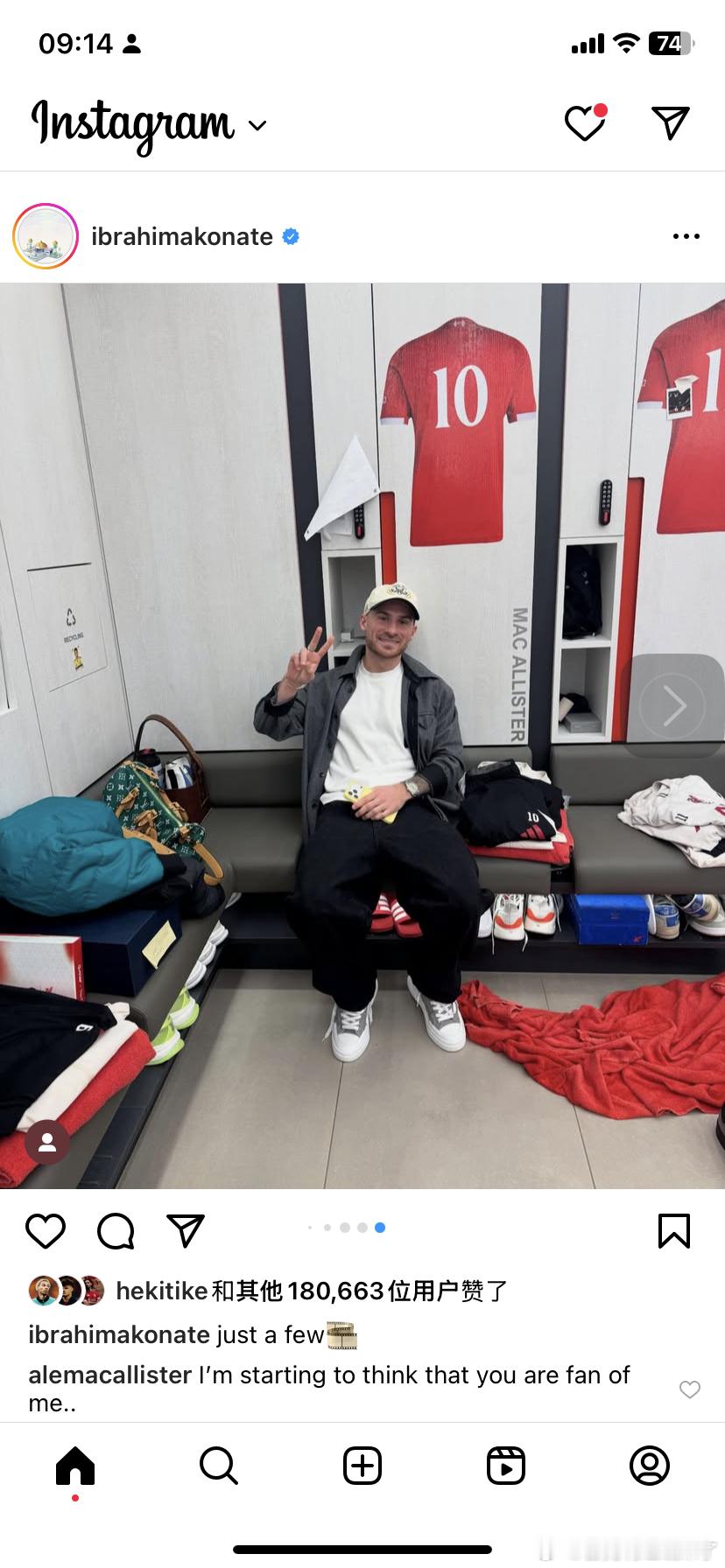 麦卡留言:我开始想你是我的粉丝了利物浦