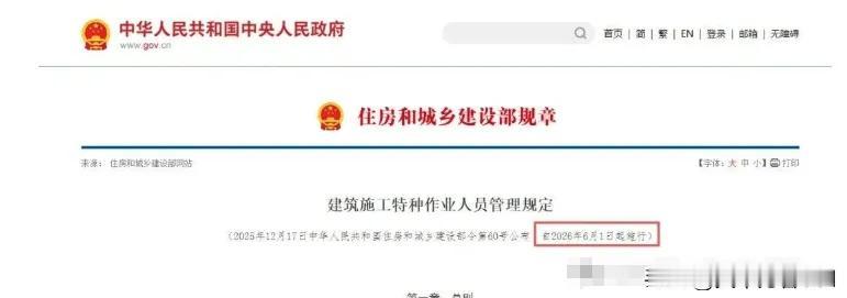 2026年6月1日,住建部第60号令《建筑施工特种作业人员管理规定》将全国施行,建筑行业迎来重磅用工新规。