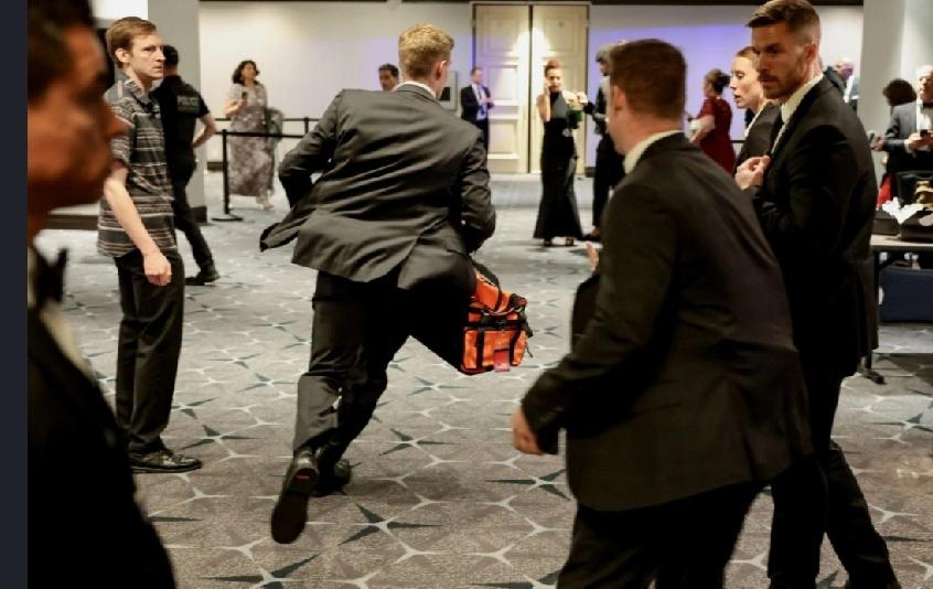 路透社报道指,晚宴期间有枪手开火,特勤人员迅即紧急撤离特朗普,所有宾客亦逃离现场。