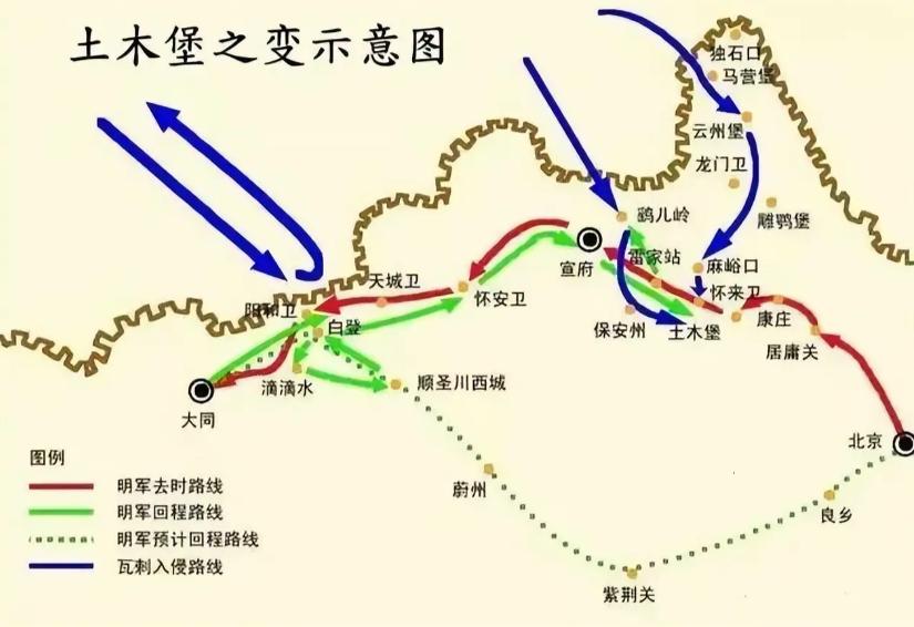 明军出征过程中,宦官王振主导全部军事决策,多次变更既定行军路线,大军滞留土木堡驻扎,营地水源被瓦剌军队切断,瓦剌趁明军移营调整、阵型混乱之际发起突袭,明军神机营来不及装填火器,骑兵无法完成列阵,步兵失去攻防掩护,京军主力彻底溃败,直接证实卫所框架下的传统京军战术体系彻底失效。