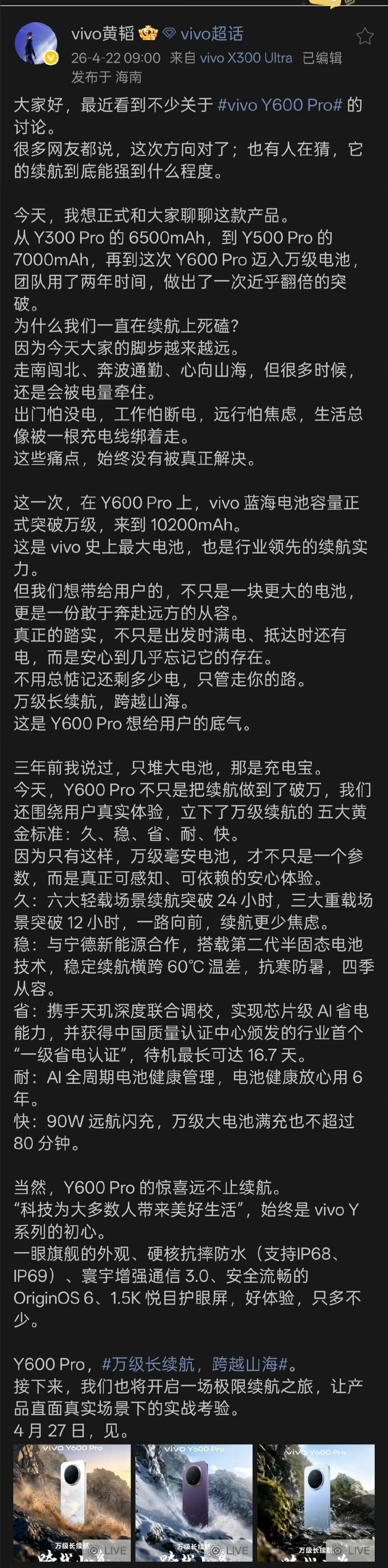 数码闲聊站 vivo Y600 Pro官宣定档!4月27日!6.83寸1.5K护