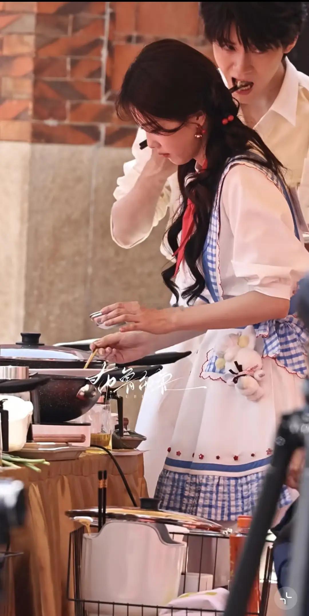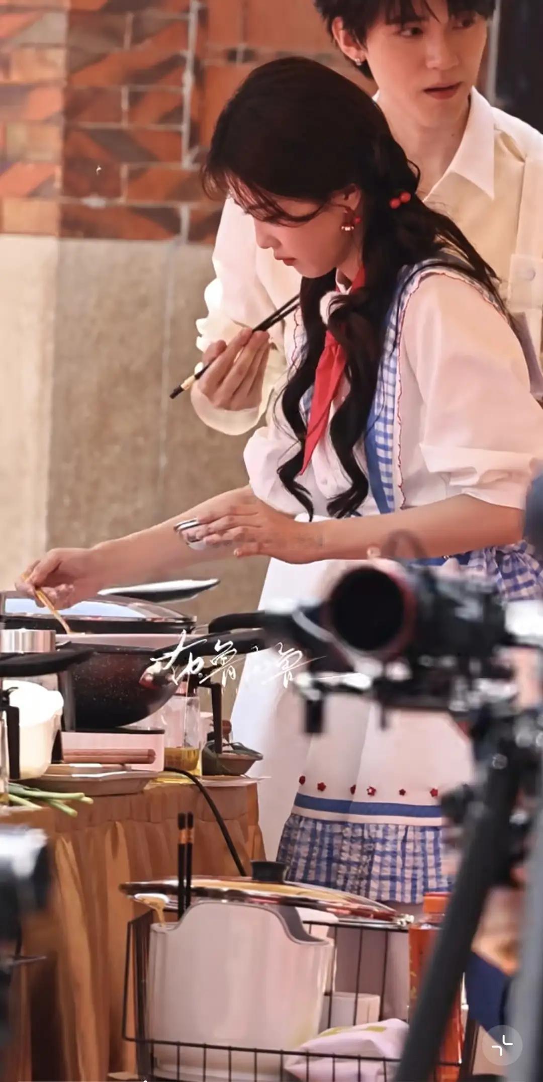 白鹿录跑男路透,穿着小裙子拿着勺和小碗,好认真的在做饭呀!