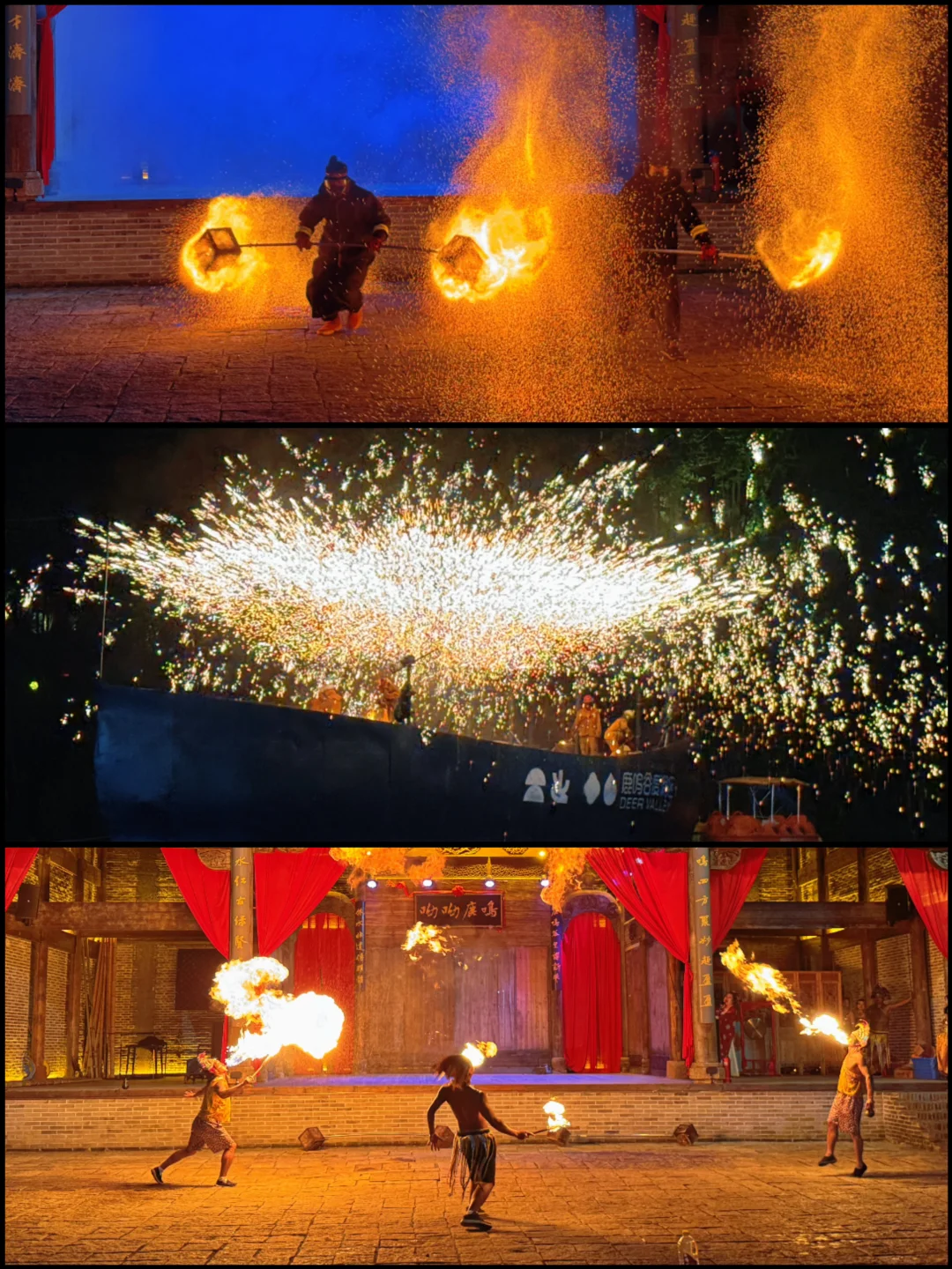 景区全天都有各种表演,NPC互动、卡皮巴拉巡游等,十分有趣。夜晚更是重头戏,川剧变脸、火壶、打铁花等非遗活动轮番上演,嗨到尖叫!