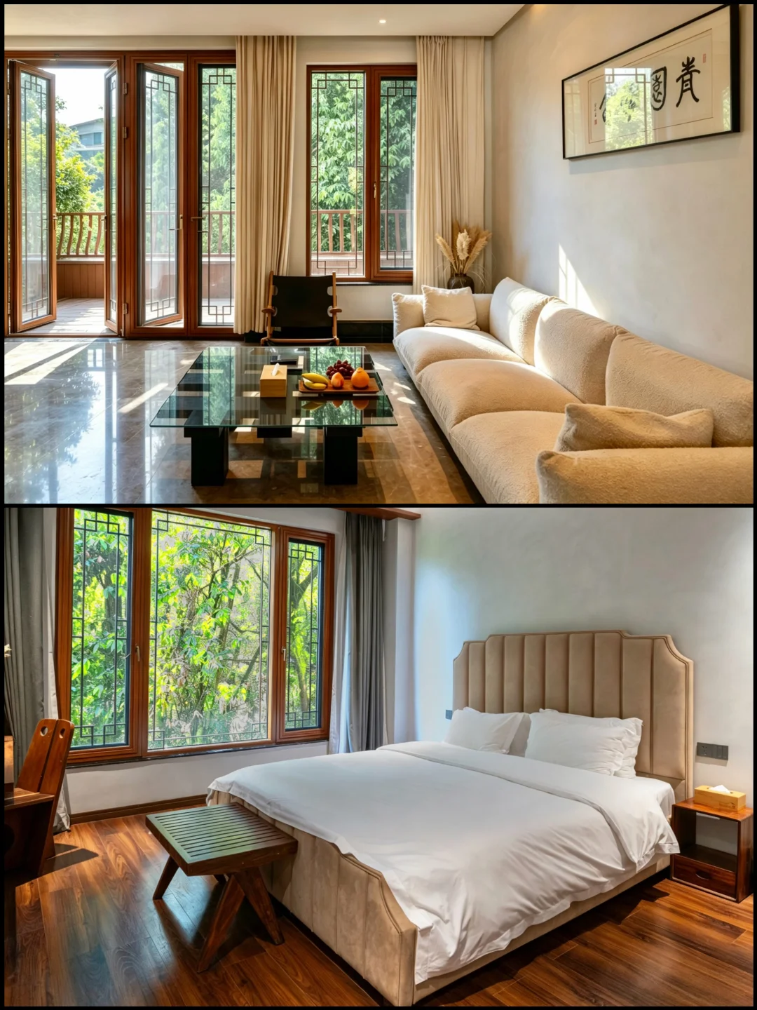 ▪️修河汤院:预算充足的直接选汤院,青瓦白墙、山林环绕,还能在院内独享私汤。晨起听鸟鸣、午后庭院喝茶、夜晚泡私汤看星空,度假感拉满⛱️