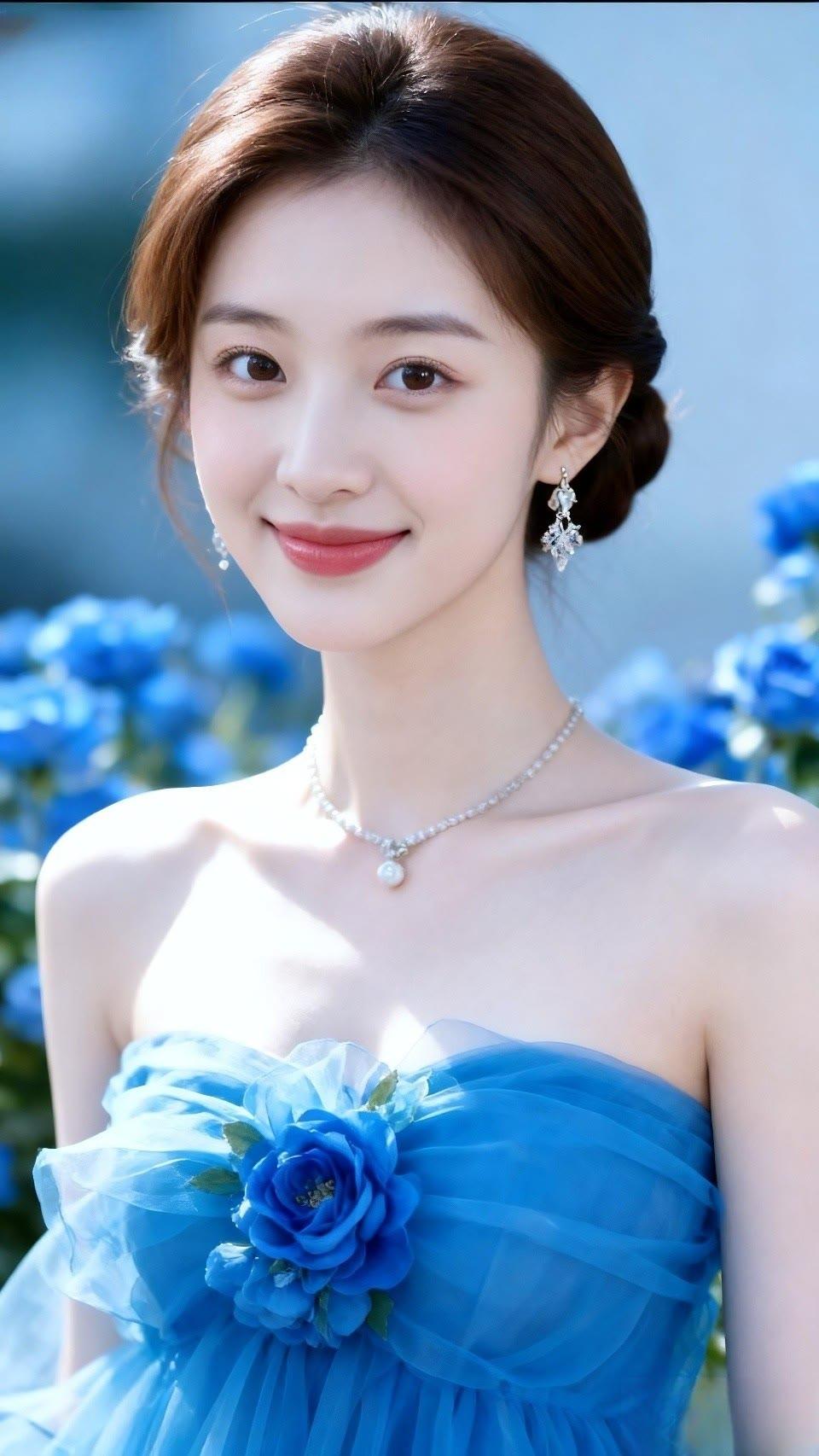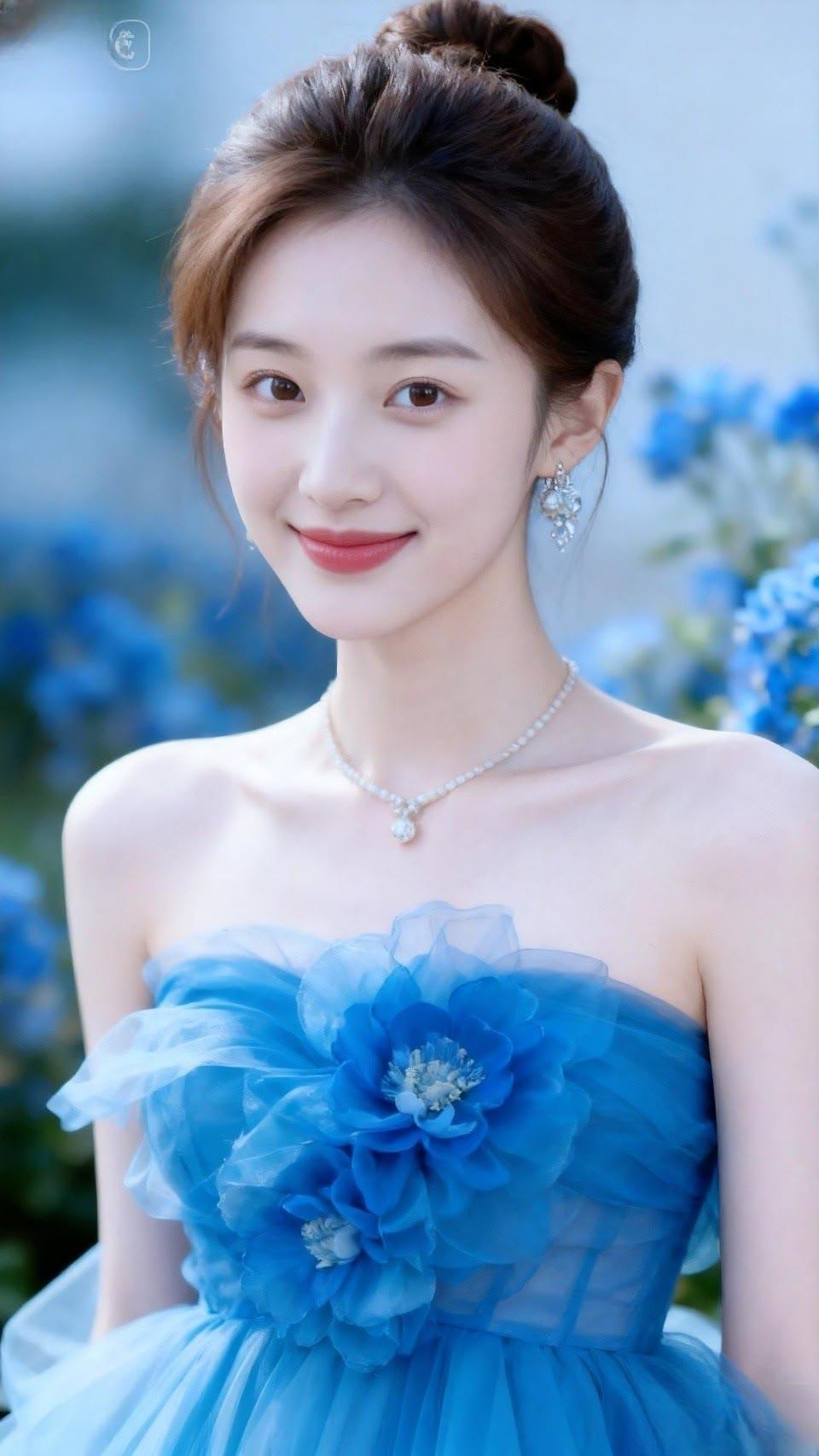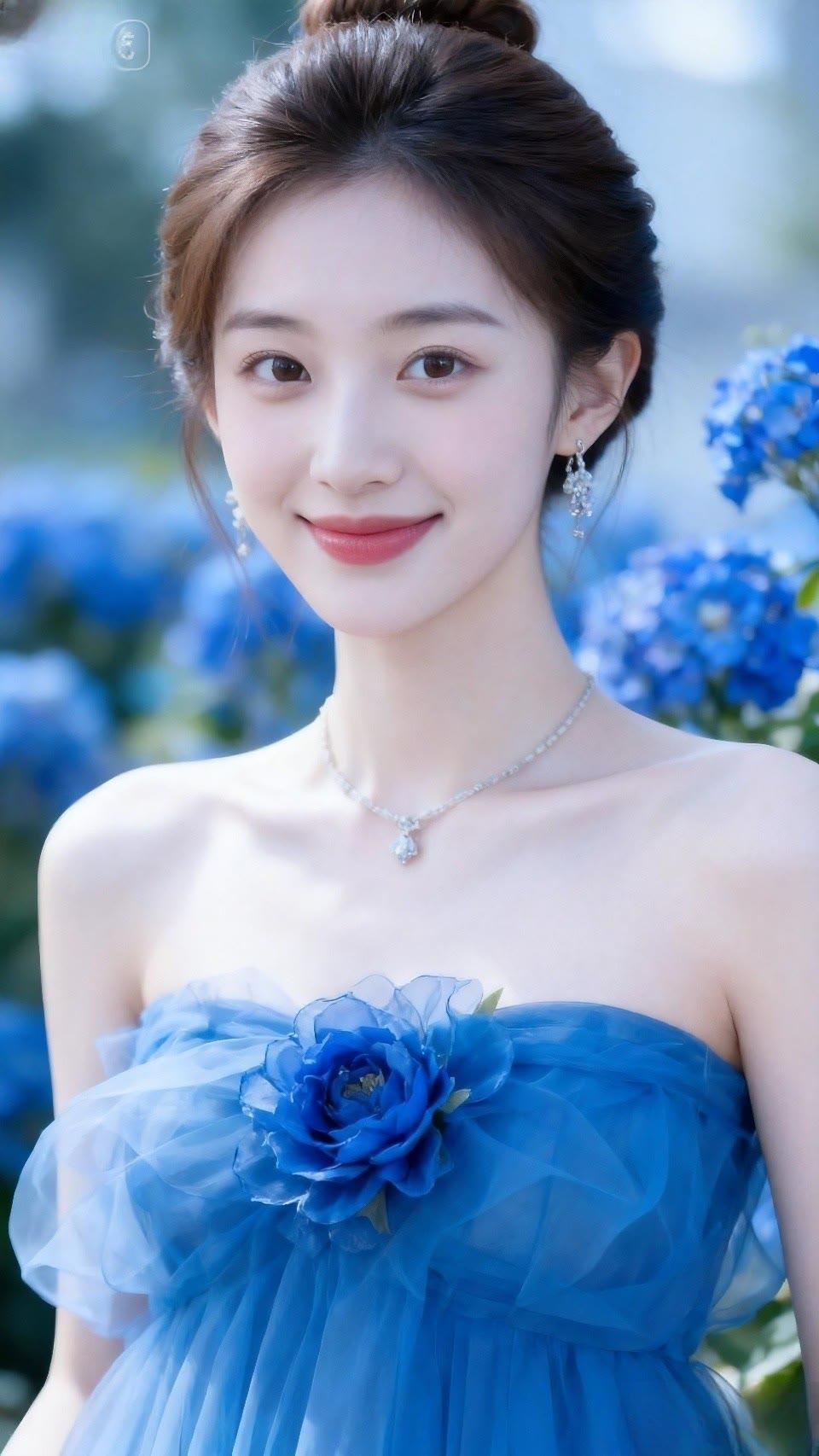 优雅蓝裙,绽放如花,温柔微笑,宛如春日暖阳。