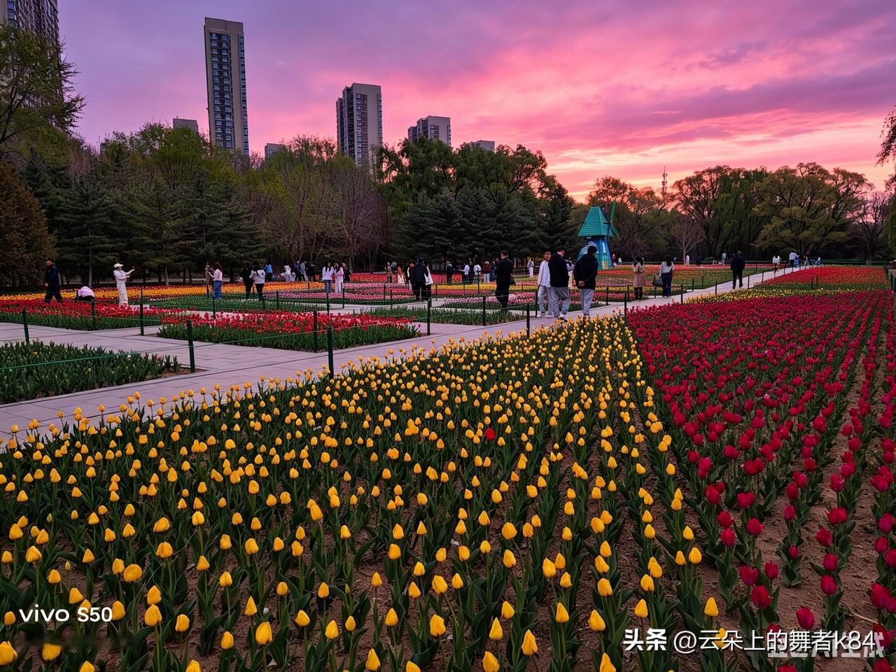 分享郁金香照片花海映夕阳