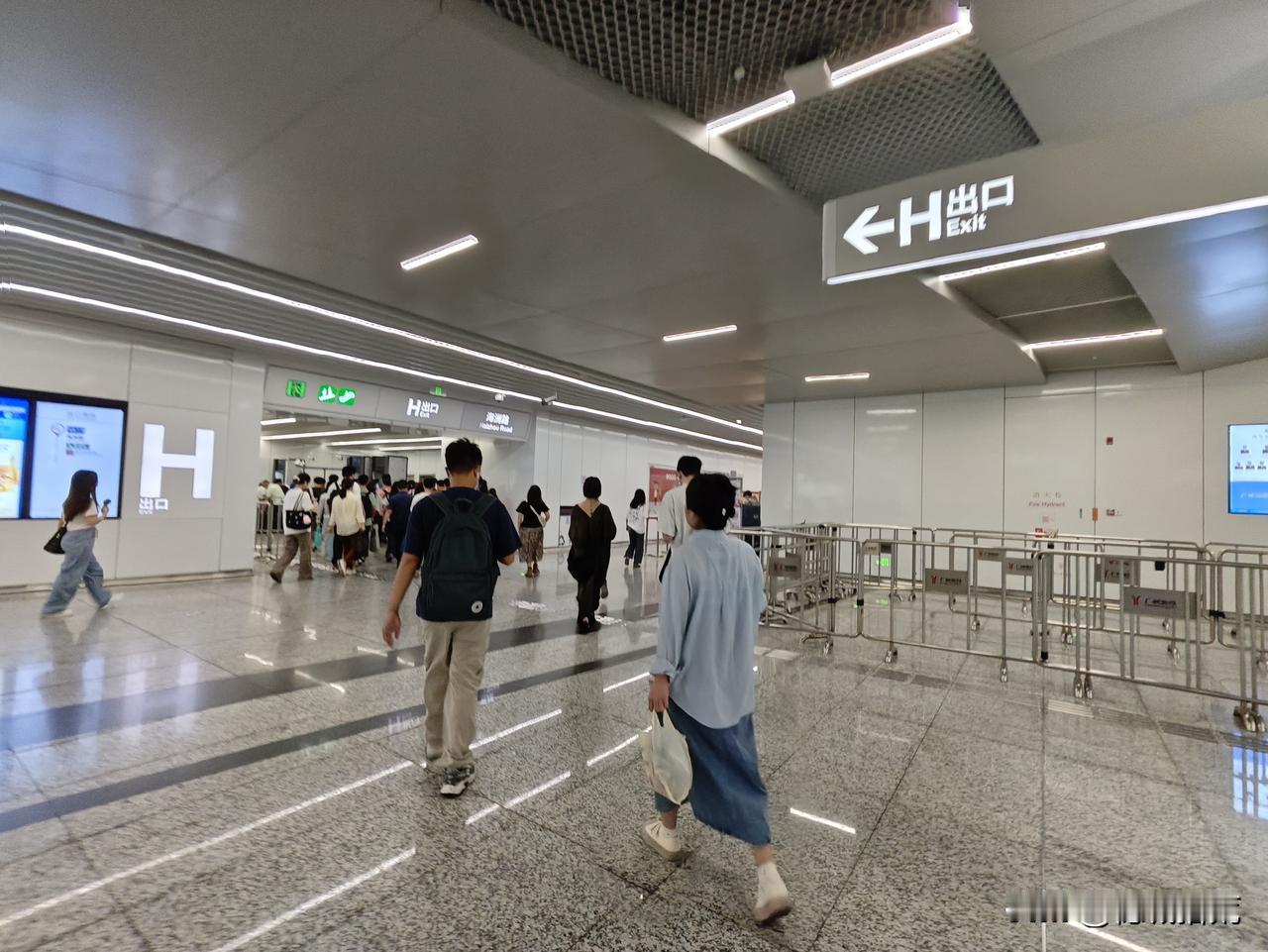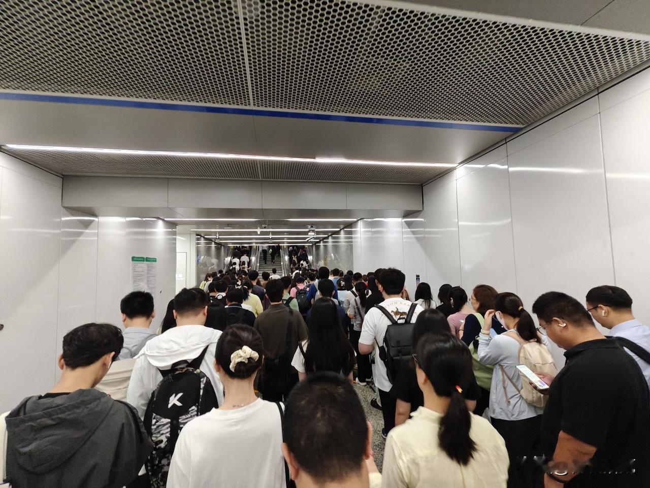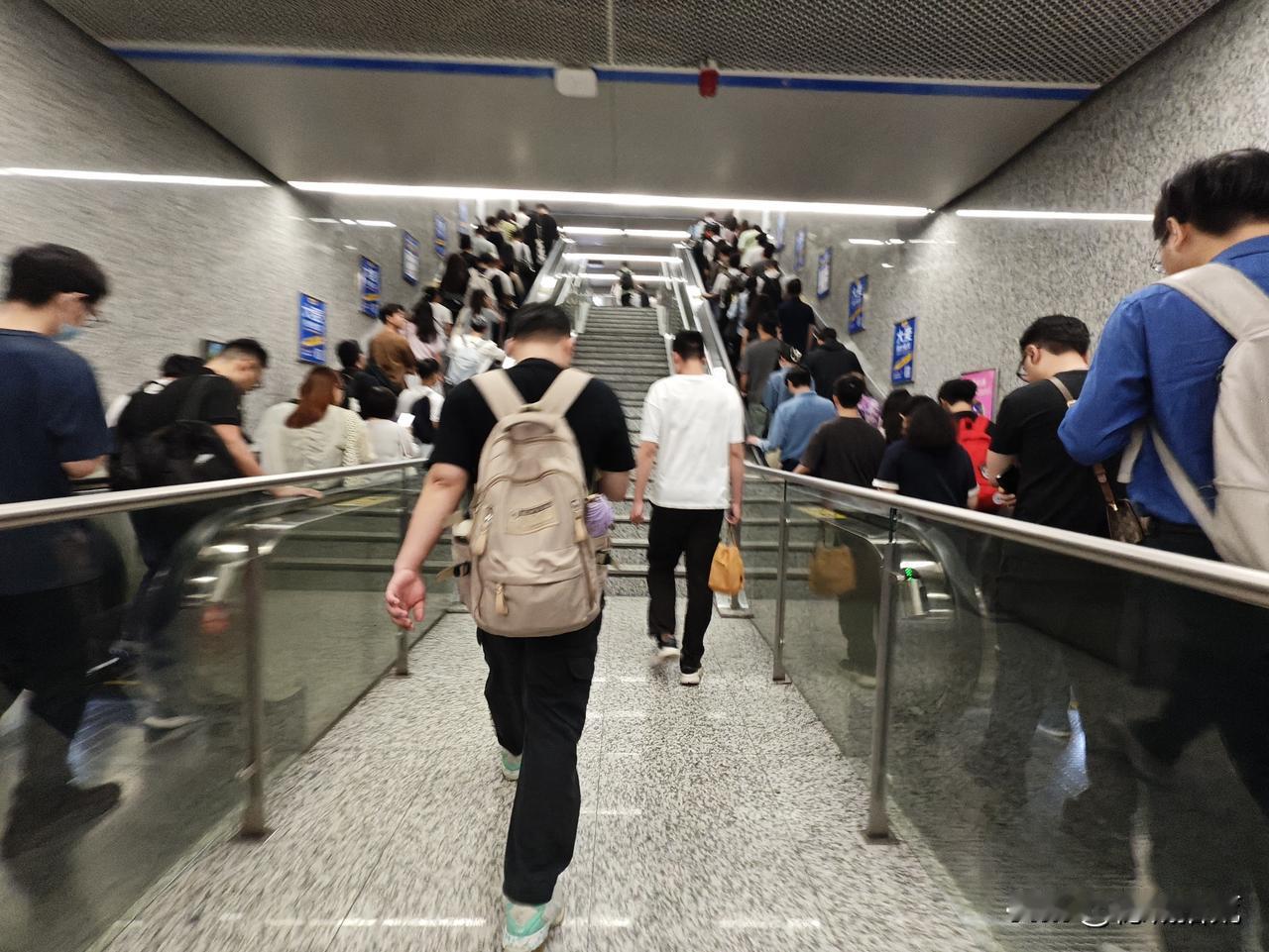 早高峰的磨碟沙H口,几乎,所有人被推着往外涌 。或许,只有附近上班的牛马先知,即使电扶梯火力全开,全部调成出站模式,扶梯前还是大排长龙。当然了,体力好的爬楼梯,楼梯也一样拥堵。