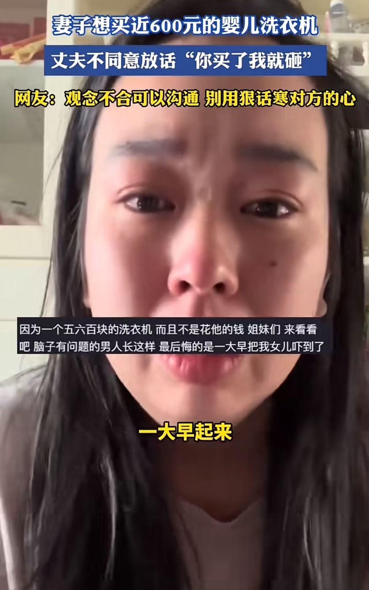 女子哭诉,自己花五六百买的婴儿洗衣机,遭到丈夫砸毁!丈夫放话:你买了我就会砸!