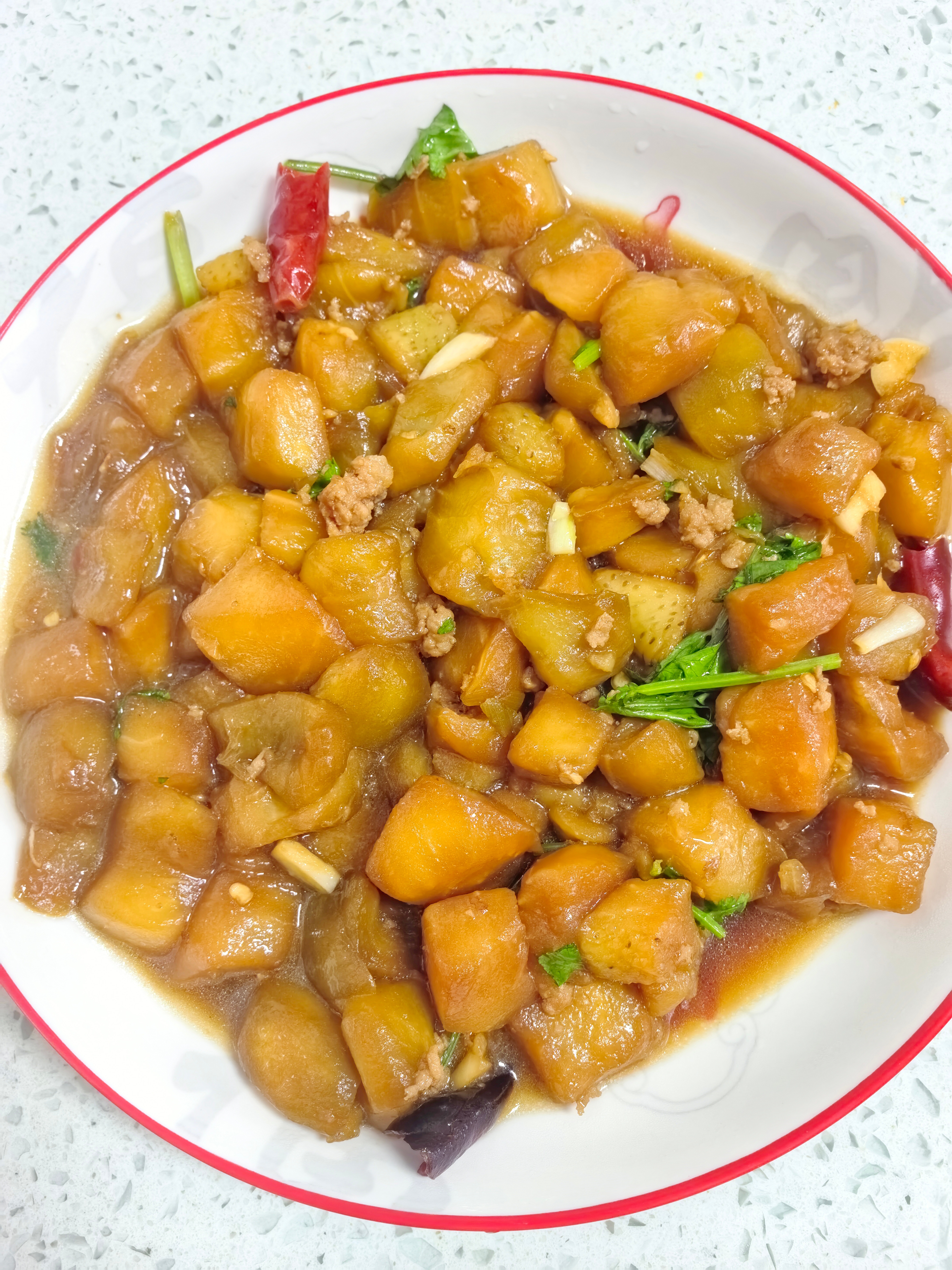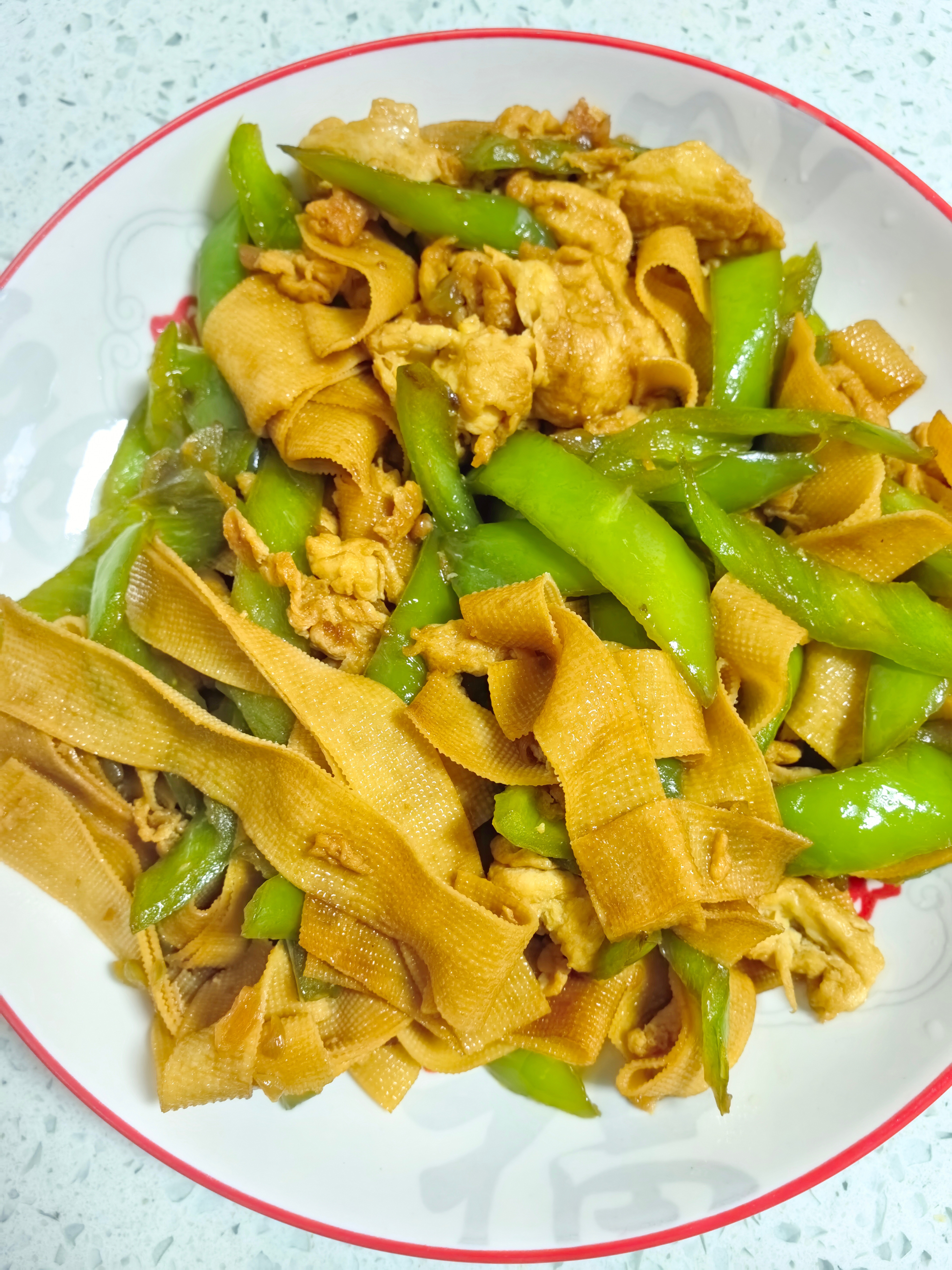 好友们晚上好!周二快乐,晚餐香香!今天的晚餐:辣椒胡萝卜炒肉红烧羊肉松花蛋
