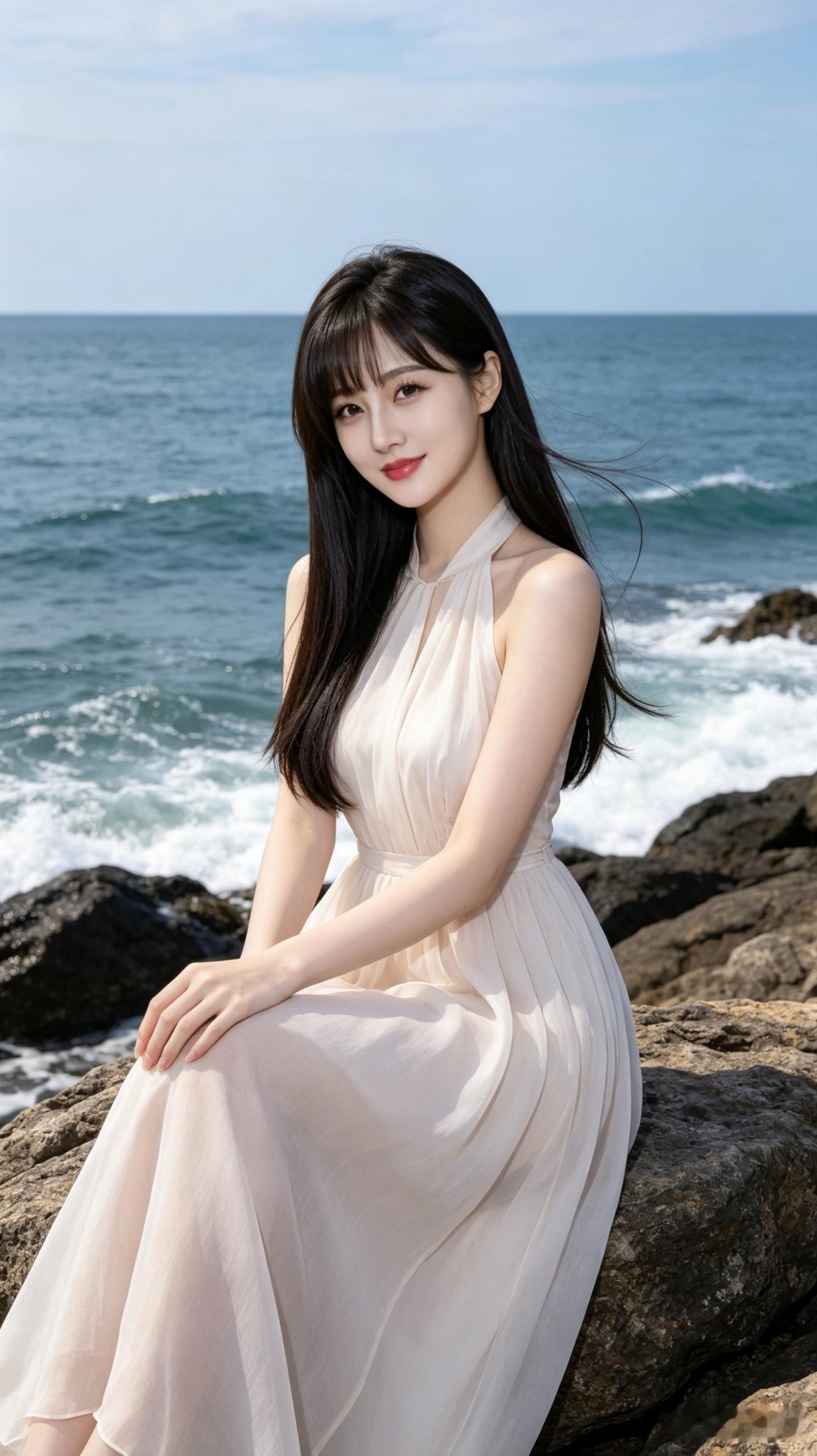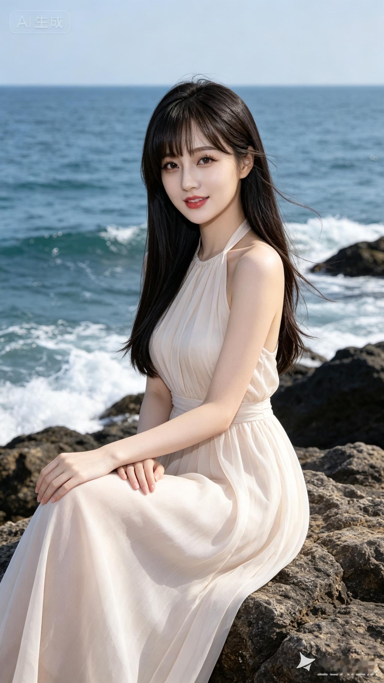 海边漫步,温柔时光,轻纱裙摆随风飘扬。