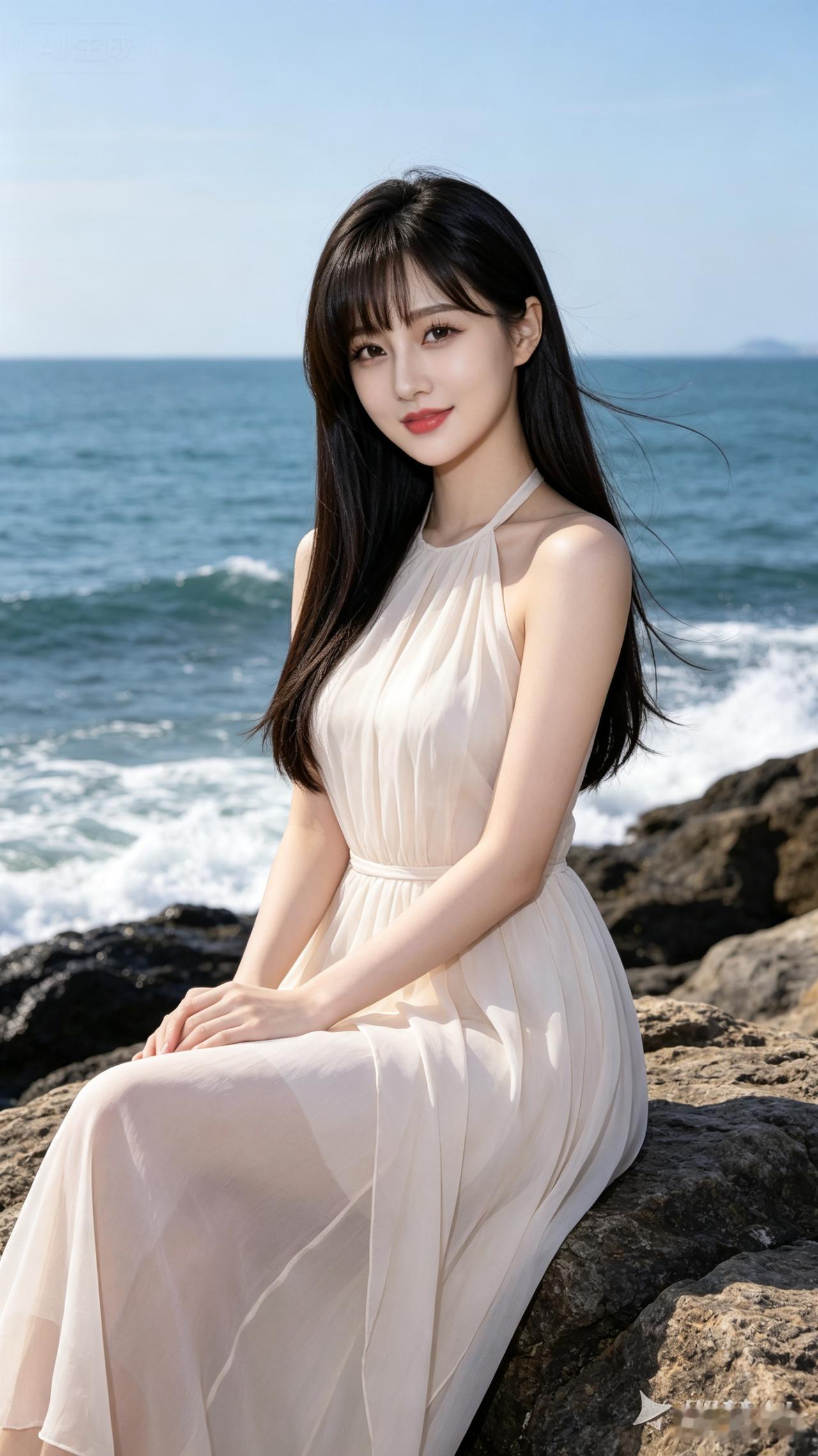 美女海边休闲时光,轻奢穿搭,享受阳光与海风