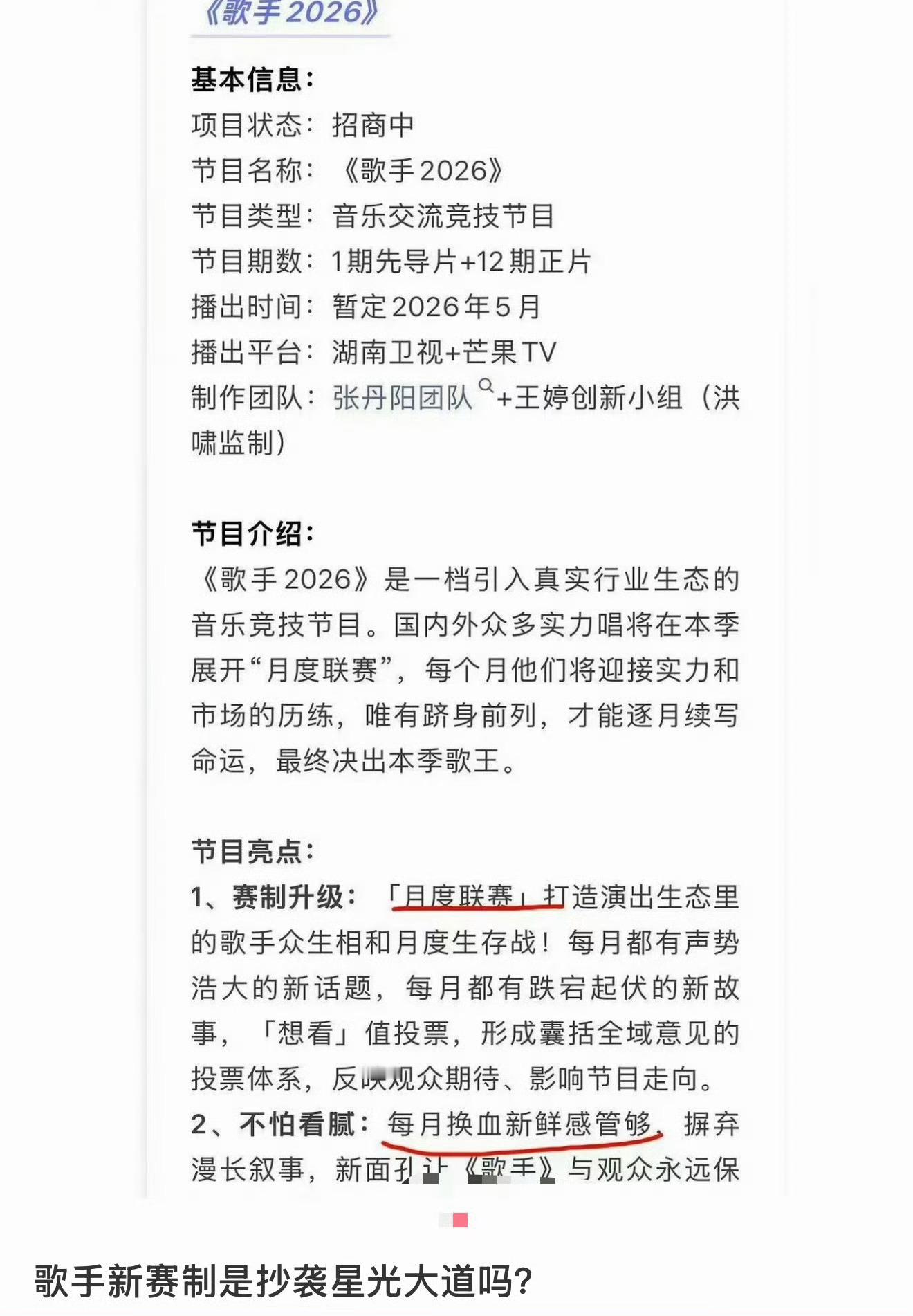 看完浪姐2026的一地鸡毛,对芒果台的歌手2026没有任何期待。这几年,芒果台综艺制作水准直线下滑,还在吃之前的综艺IP老本,还没有任何新意,只剩下炒作。满谈娱乐