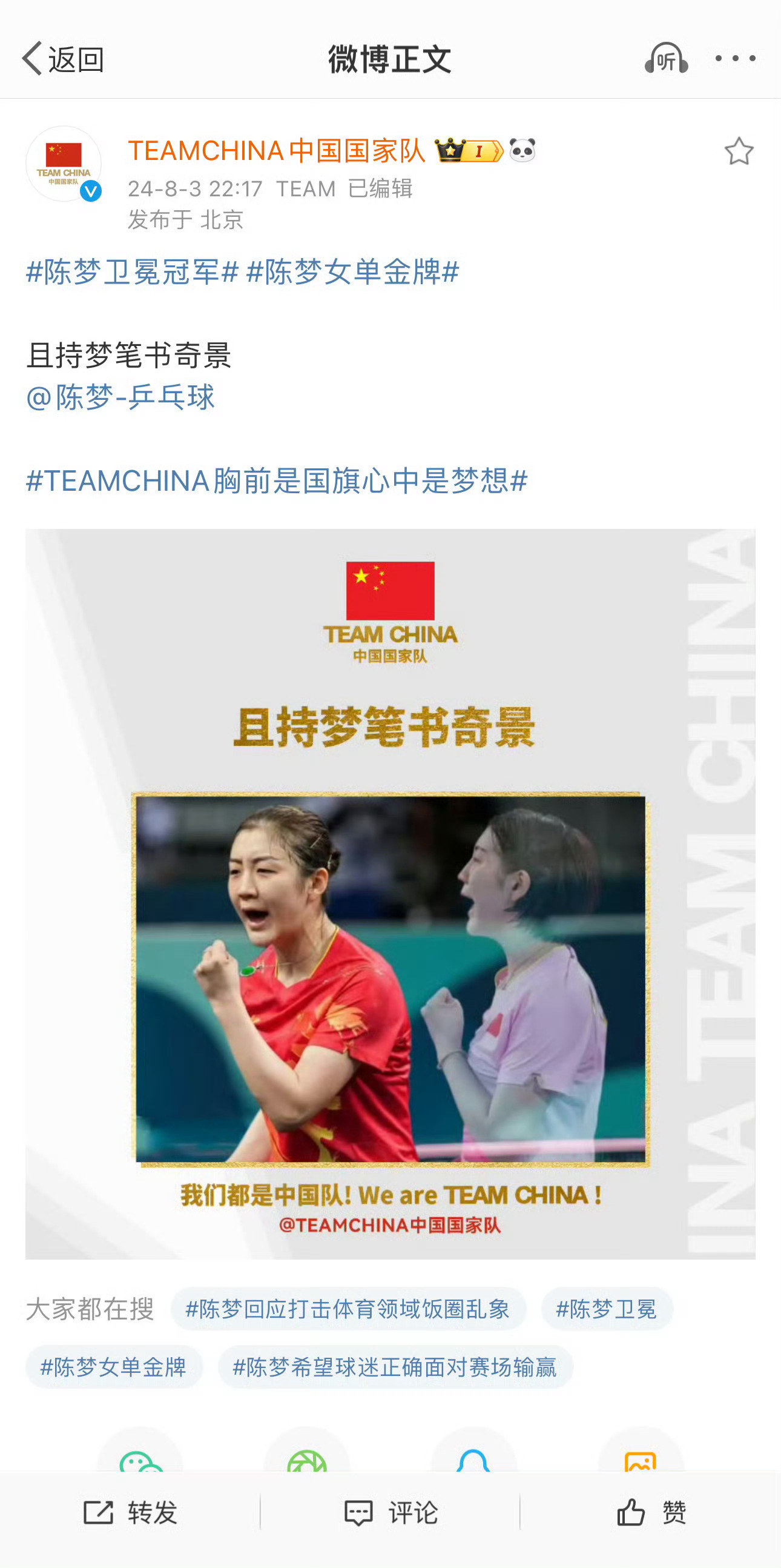 图2️⃣:TTF官网发布巴黎奥运陈梦女子单打夺冠两个月纪念
