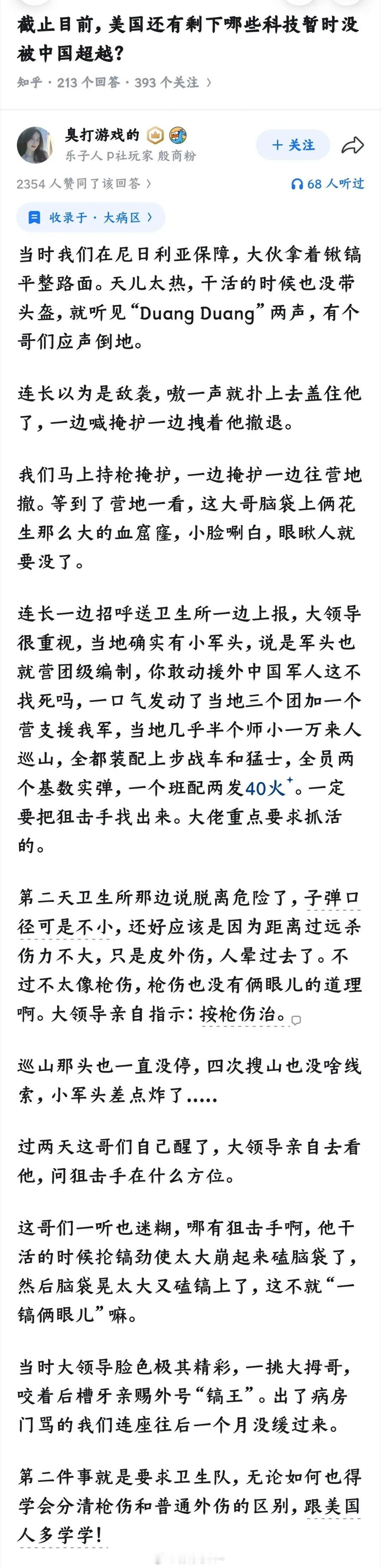 我们的军医院校要求学生要去美国实习一年,毕竟我们这里平时看不见枪伤。