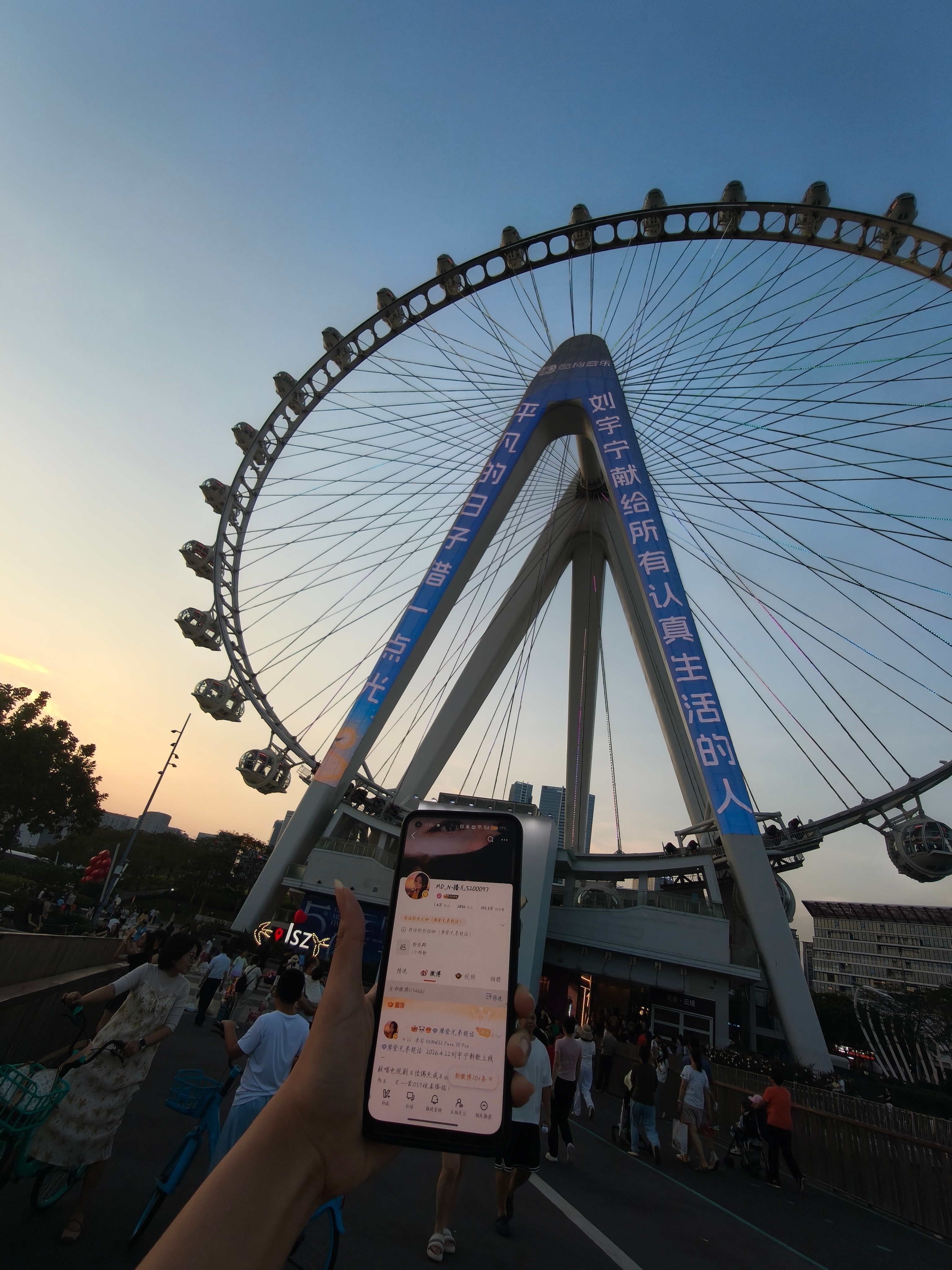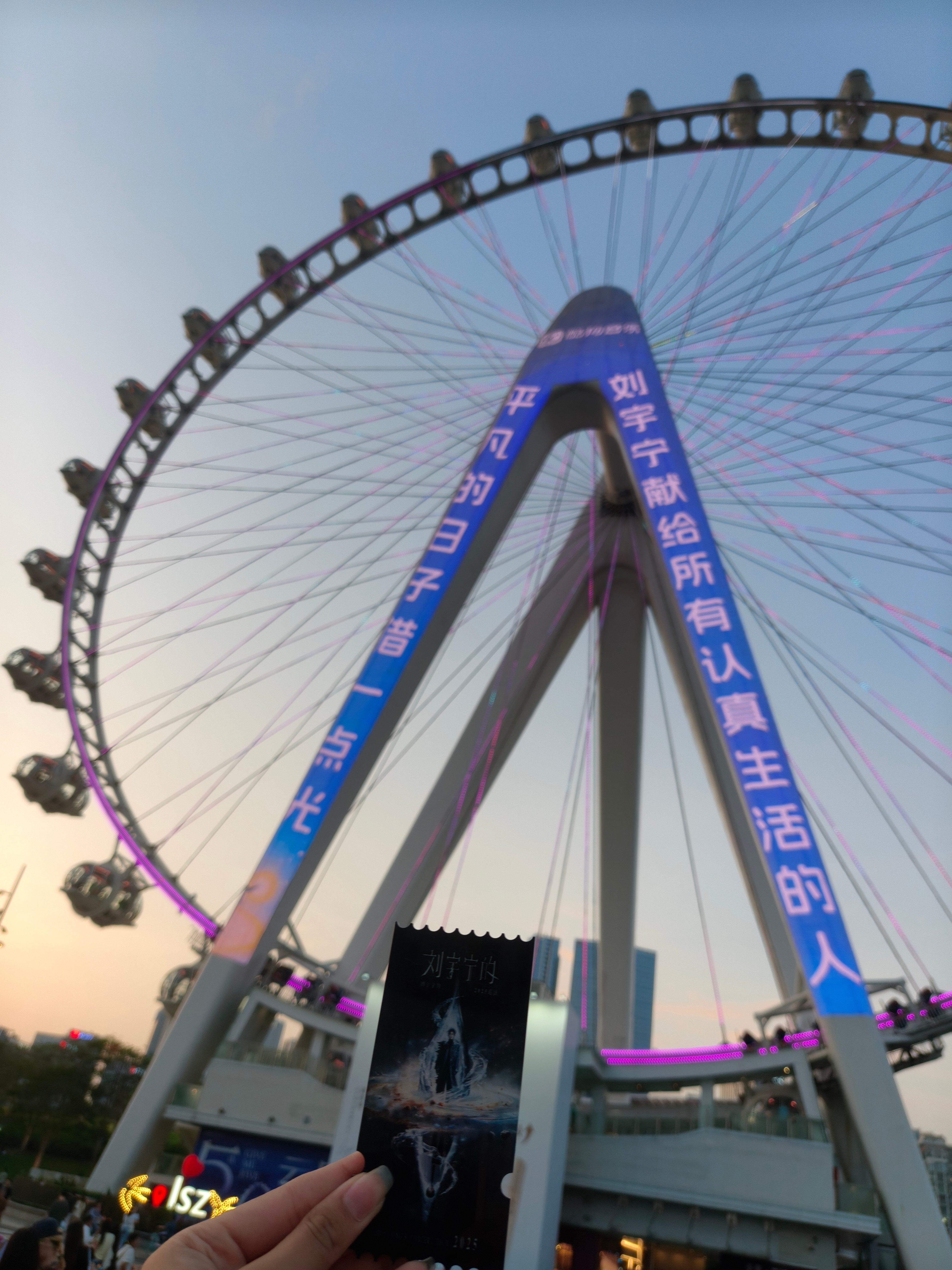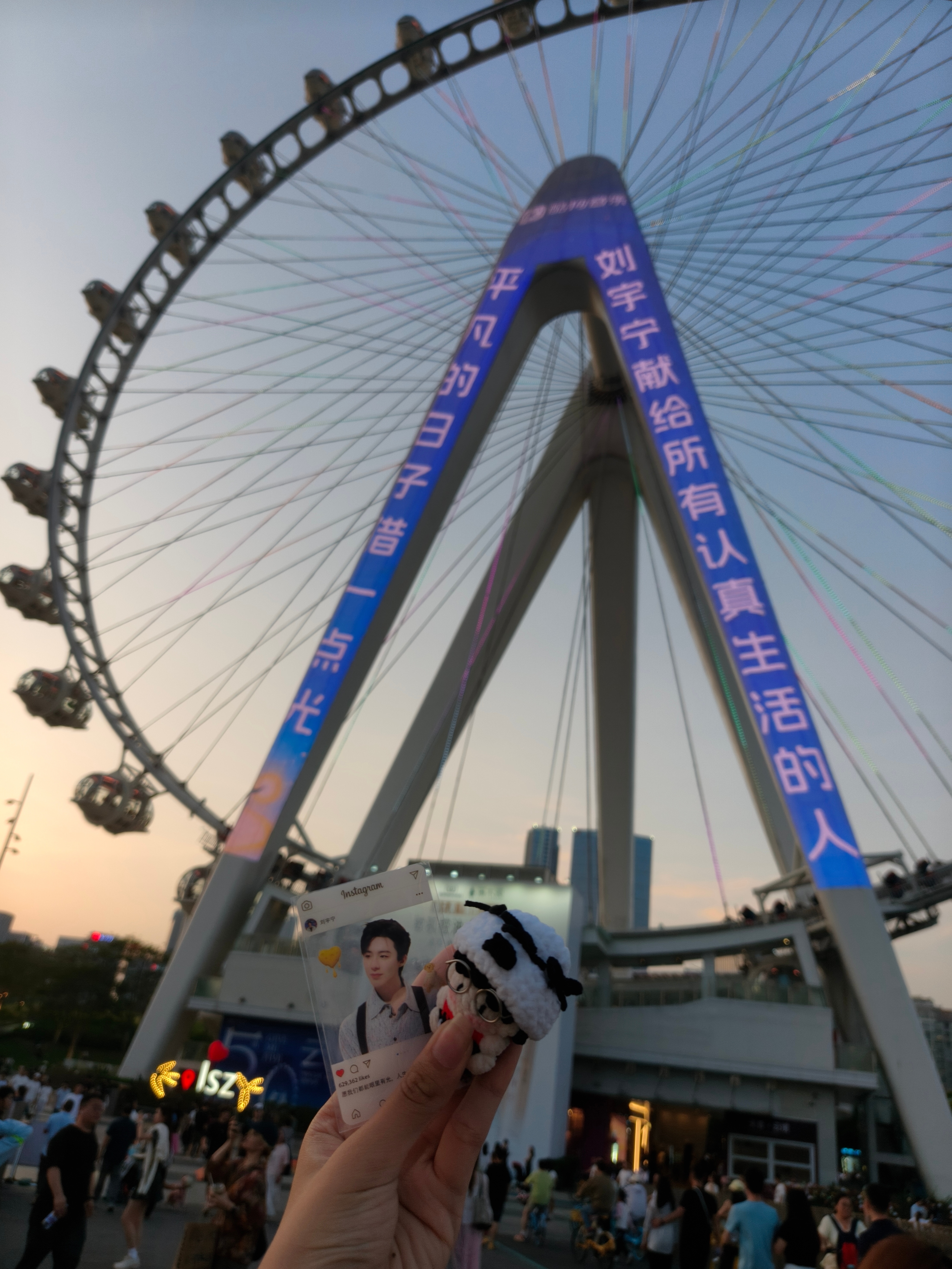 摩登兄弟 早上一睁眼就收到了惊喜谢谢好姐妹带着我Id打卡我们的最爱,酷狗代言人刘宇宁湾区之光摩天轮.应援排面太震撼了。爱你😘「平凡的日子借一点光」 我们和刘宇宁一起发光