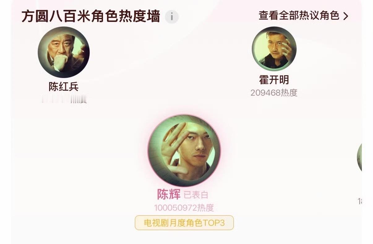 许凯方圆八百米角色热度破亿许凯陈辉角色热度破1亿《方圆八百米》许凯饰演的陈辉角色热度强势破亿,成绩格外亮眼。许凯一直踏实打磨演技,演绎细腻有层次,凭借实力塑造鲜活角色,收获大批观众认可与喜爱。(物料cr.网络)