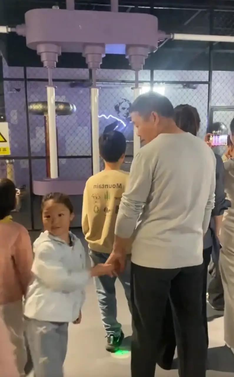 他默默牵着小家伙,耐心陪她往前走,路过趣味的科学装置时,还悄悄放慢速度,让孩子好好观赏。全程小心翼翼,动作轻柔又温柔,默默守护着孩童纯粹的天真。