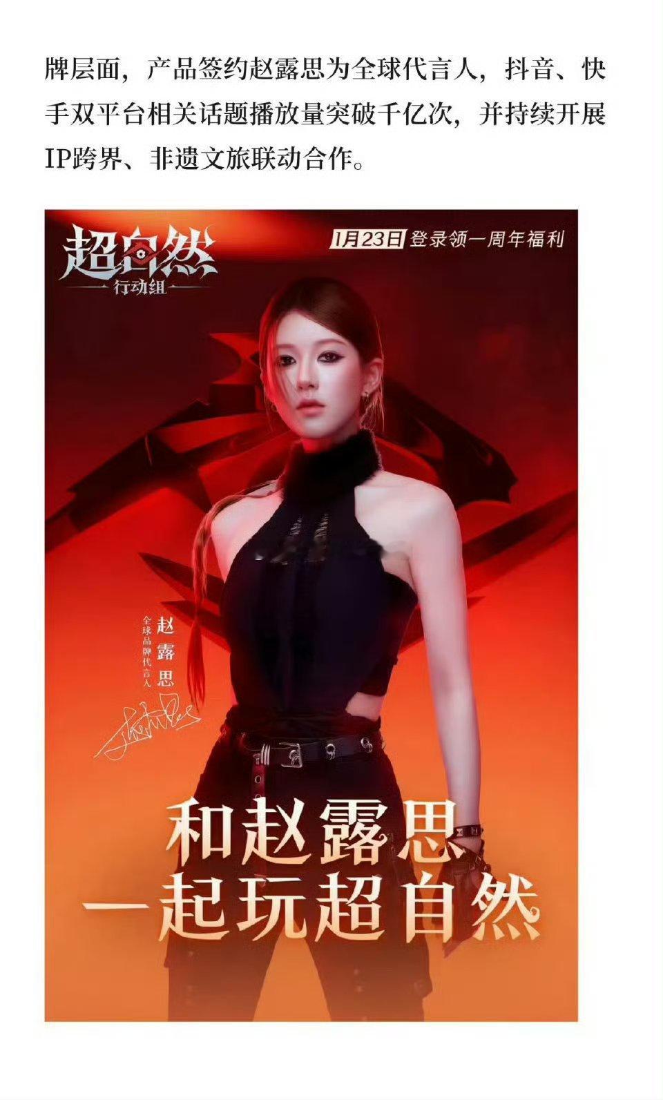 超自然官宣赵露思为全球代言人后日活跃用户突破了1千万了