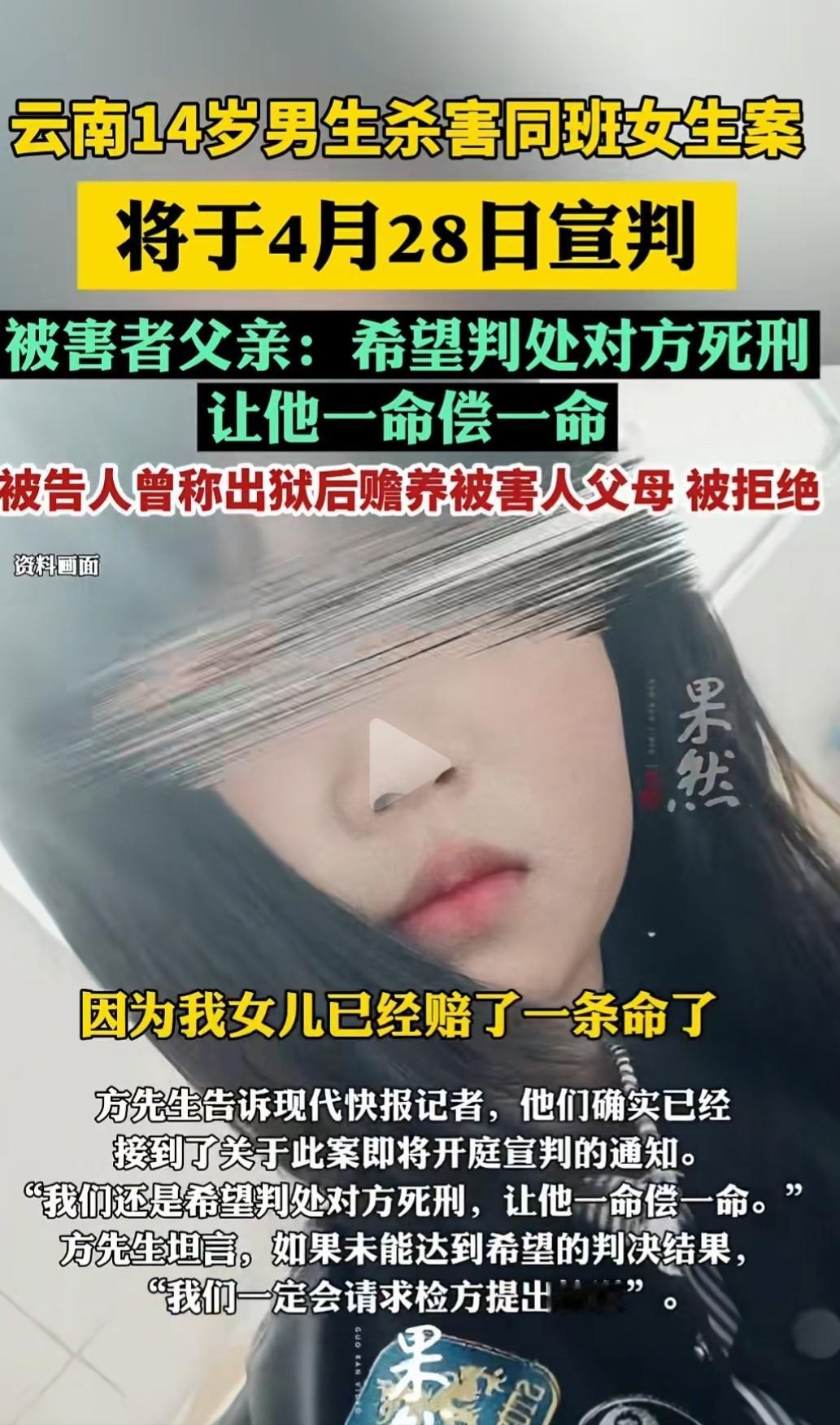 信息来源:凤凰网|14岁男生杀害同班女同学案28日宣判被害人母亲回应