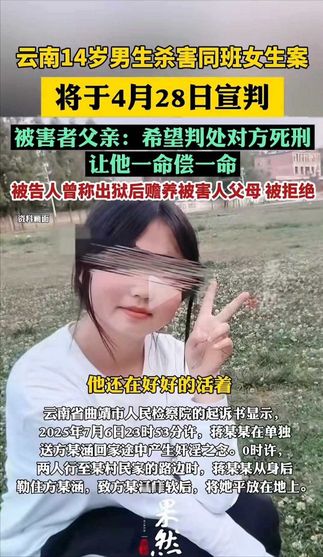 2026 年 4 月 28 日,这起令人痛心的恶性案件,即将迎来司法层面的最终裁决。开庭当日,凶手垂首伫立,浑身止不住颤抖,语声怯懦微弱,含泪向受害者父母低头忏悔认错。等我出来,给你们养老。”方晓萱的母亲在旁听席上哭得瘫倒,父亲方先生握拳眼睛通红。他盯着这个曾经同村同班的少年,狠声说:“我什么都不要,就要你偿命!”