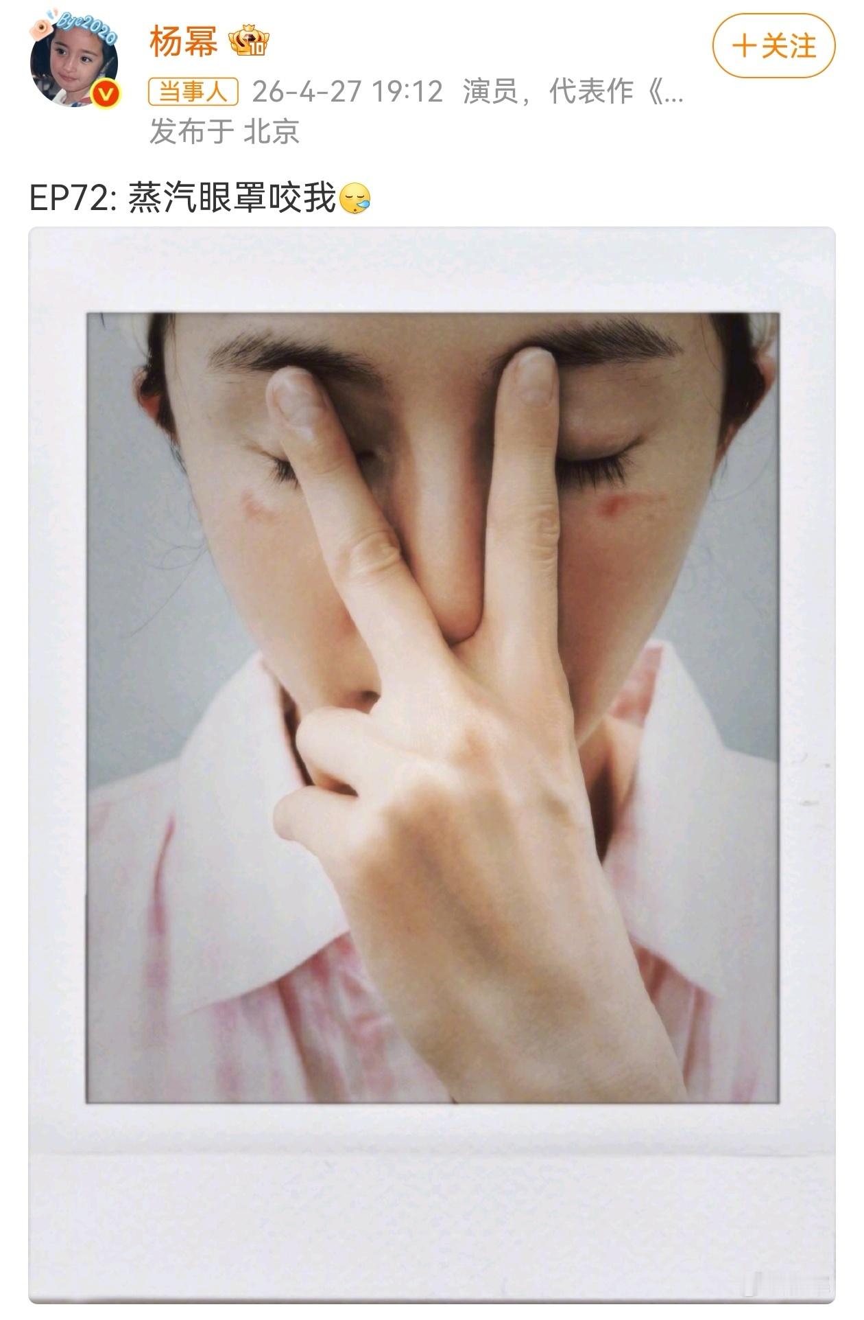 蒸汽眼罩有烫伤风险,杨幂眼周的红印,属于典型的低温烫伤,不同于瞬间高温,蒸汽眼罩内40–50℃长时间焖烤,皮肤看似不烫,但持续久了会伤皮下组织,而眼周皮肤比其他地方更嫩,更容易被烫红、烫出印。个人佩戴蒸汽眼罩,最好不要超过20分钟,更避免戴着睡觉,被蒸汽眼罩烫伤,轻则红印、刺痛,重则会导致角膜、结膜烫伤。杨幂脸被蒸汽眼罩烫伤了