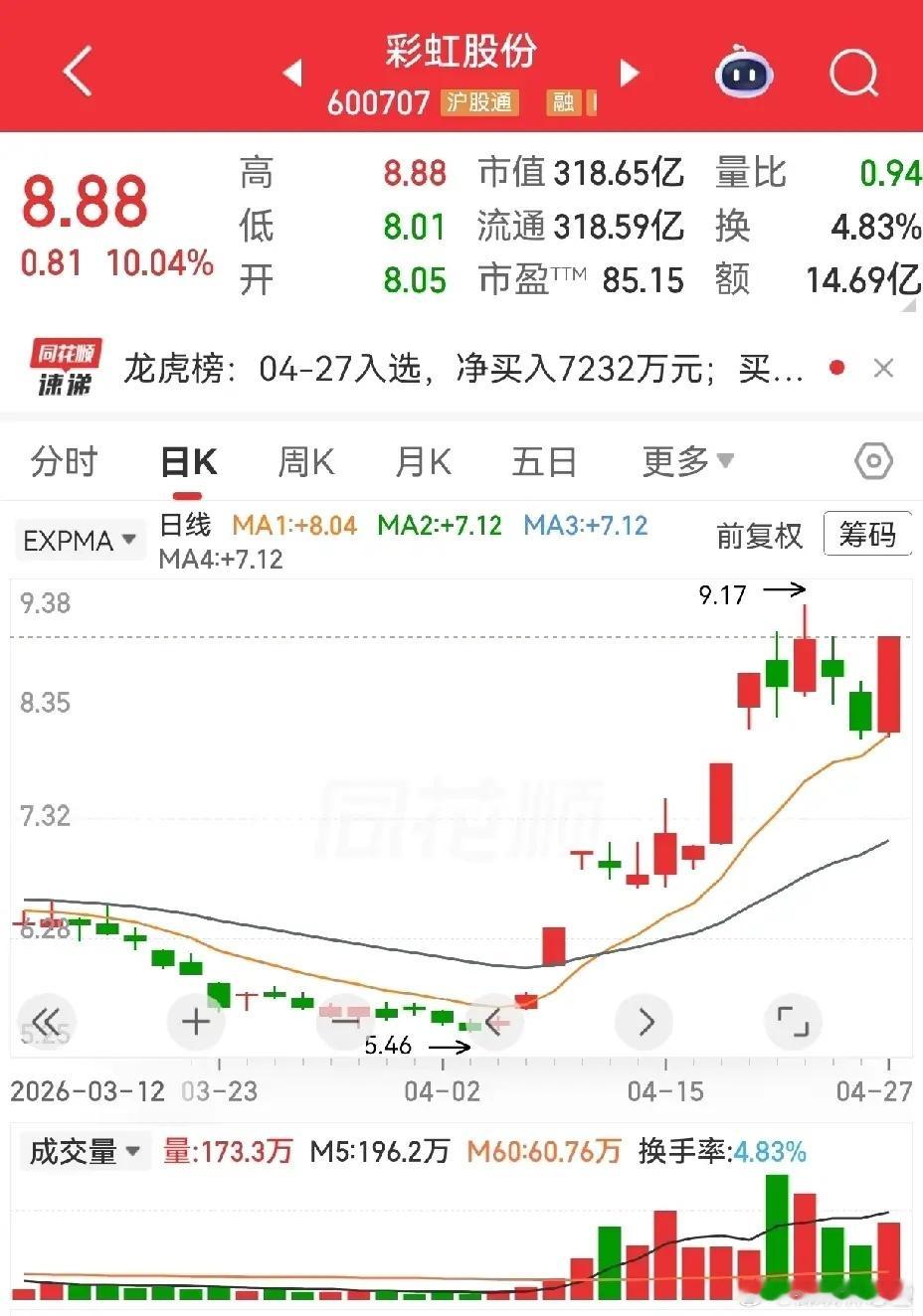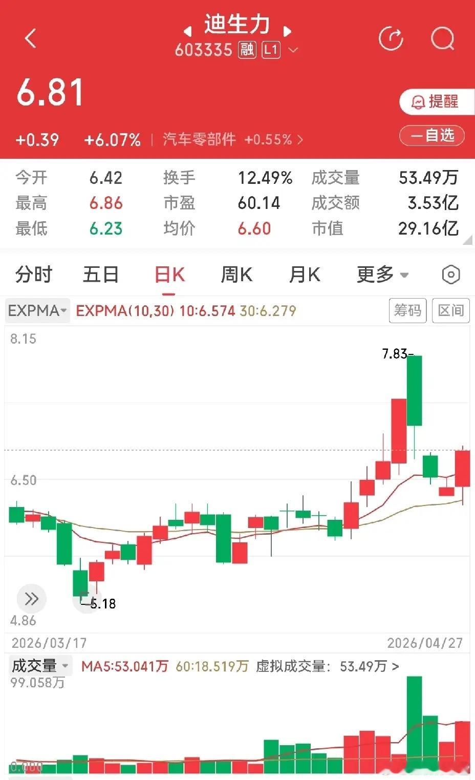 现在洗盘真厉害,好多都是破位后再回升。看来技术派的破位就跑,在当下环境中,有点不太合适。西藏珠峰,跌停板后,再砸,大幅低开,如果破位就跑的话,心情一定非常差,跑了就涨了,是涨停的涨,后悔来不及,又是二连板。彩虹股份,连续下跌,跌破跳空阳线低点,卖了,次日涨停。后不后悔,闹不闹心。迪生力,涨停后,连续三天下跌,单阳已破,考验定力的时候到了。还好,第四天来了一个放量阳线,真不容易。