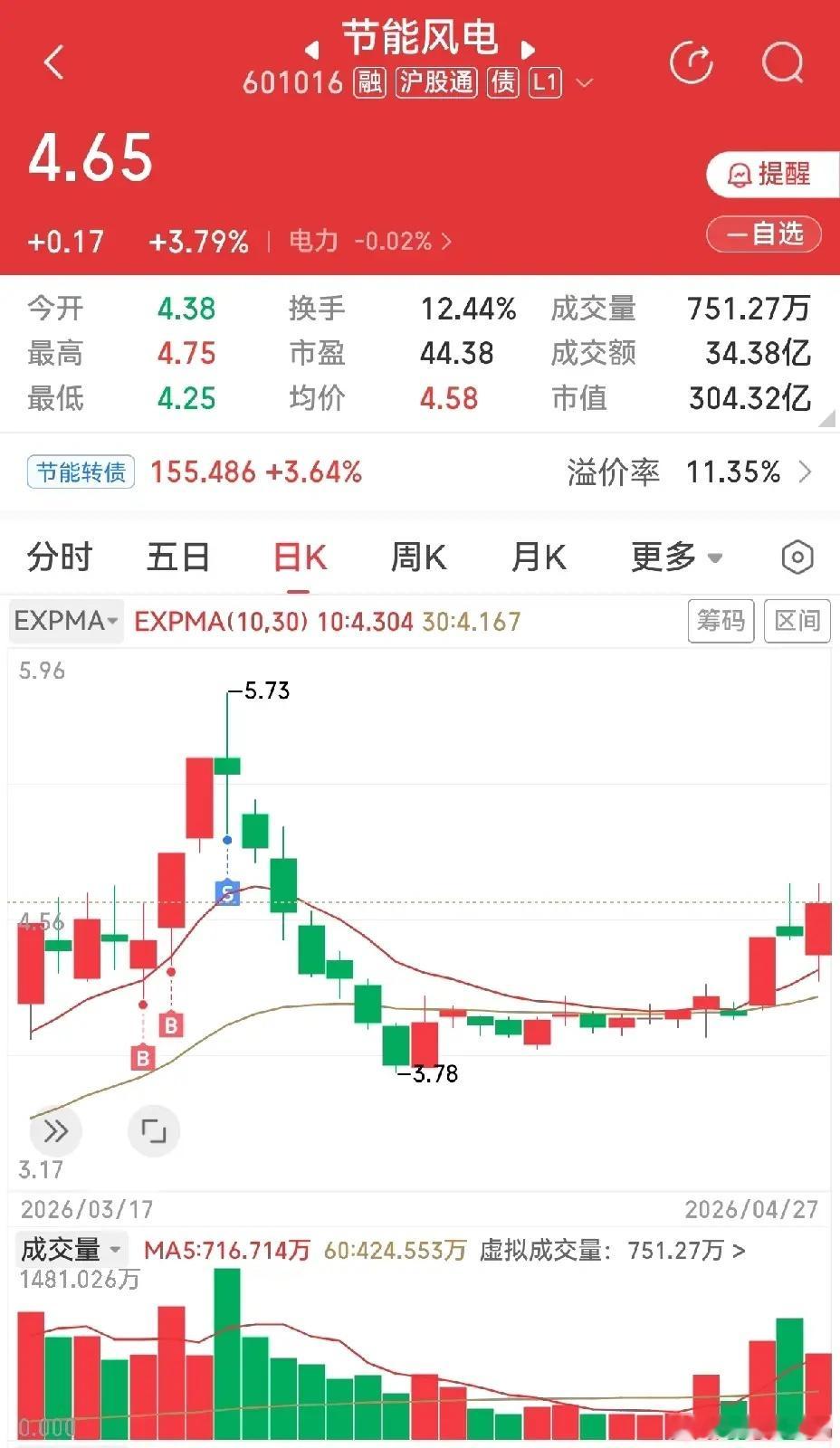 最近卖飞的票不少,多是被阴线洗盘给震荡晕了,吐了,手上无力,连股票都拿不住。通达股份如此,山东玻纤也如此。此前非常看好山东玻纤,在涨停板后第七天上次,按以往的经验,一般第八天会有表现,到了第九、十两天,连续下跌,并跌破生命线,捂着晕乎乎的脑袋下车了,然后,休息了两天,涨停。头不晕了,心却痛了。节能风电,比较熟悉,因为前面做过。这两天又进入视野,大体一个碗底的样子,只是还差一点碗边没有画出来。