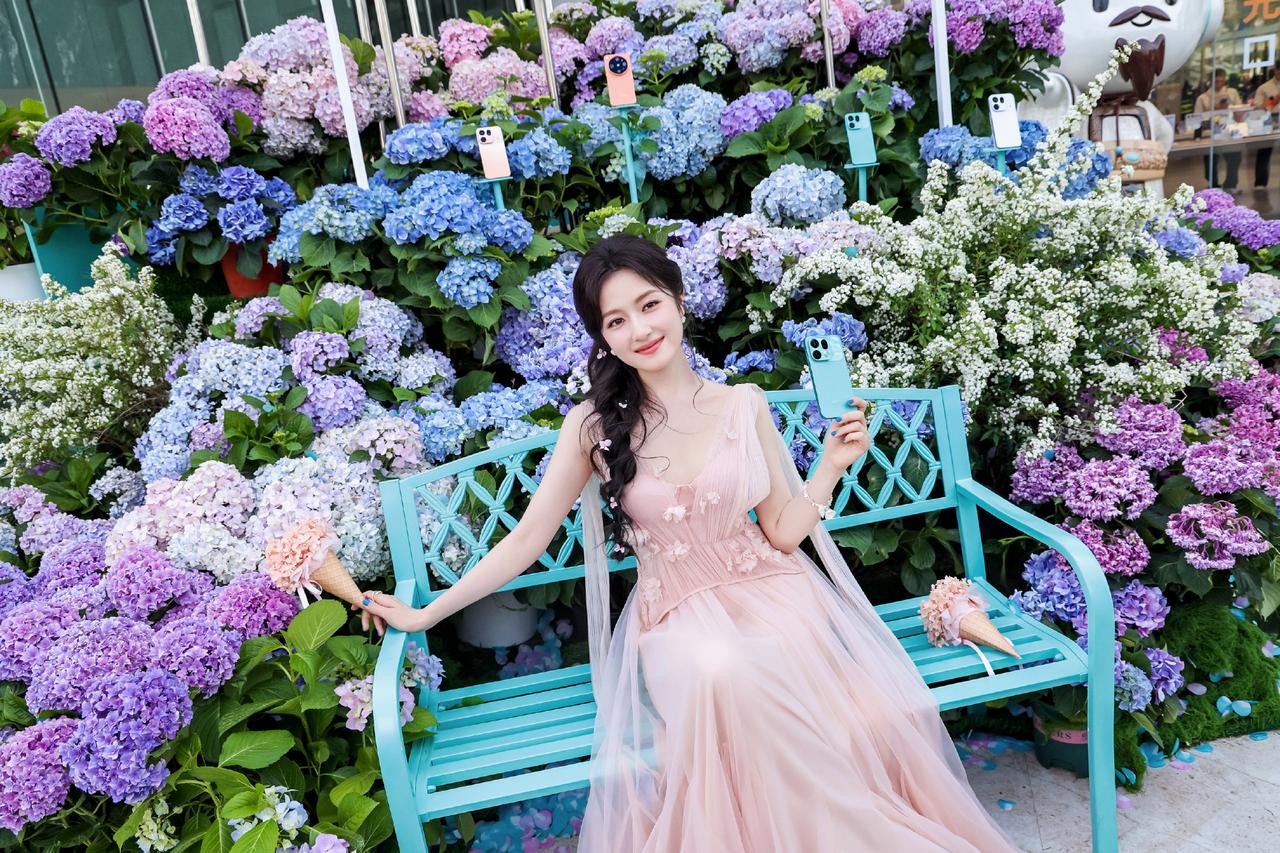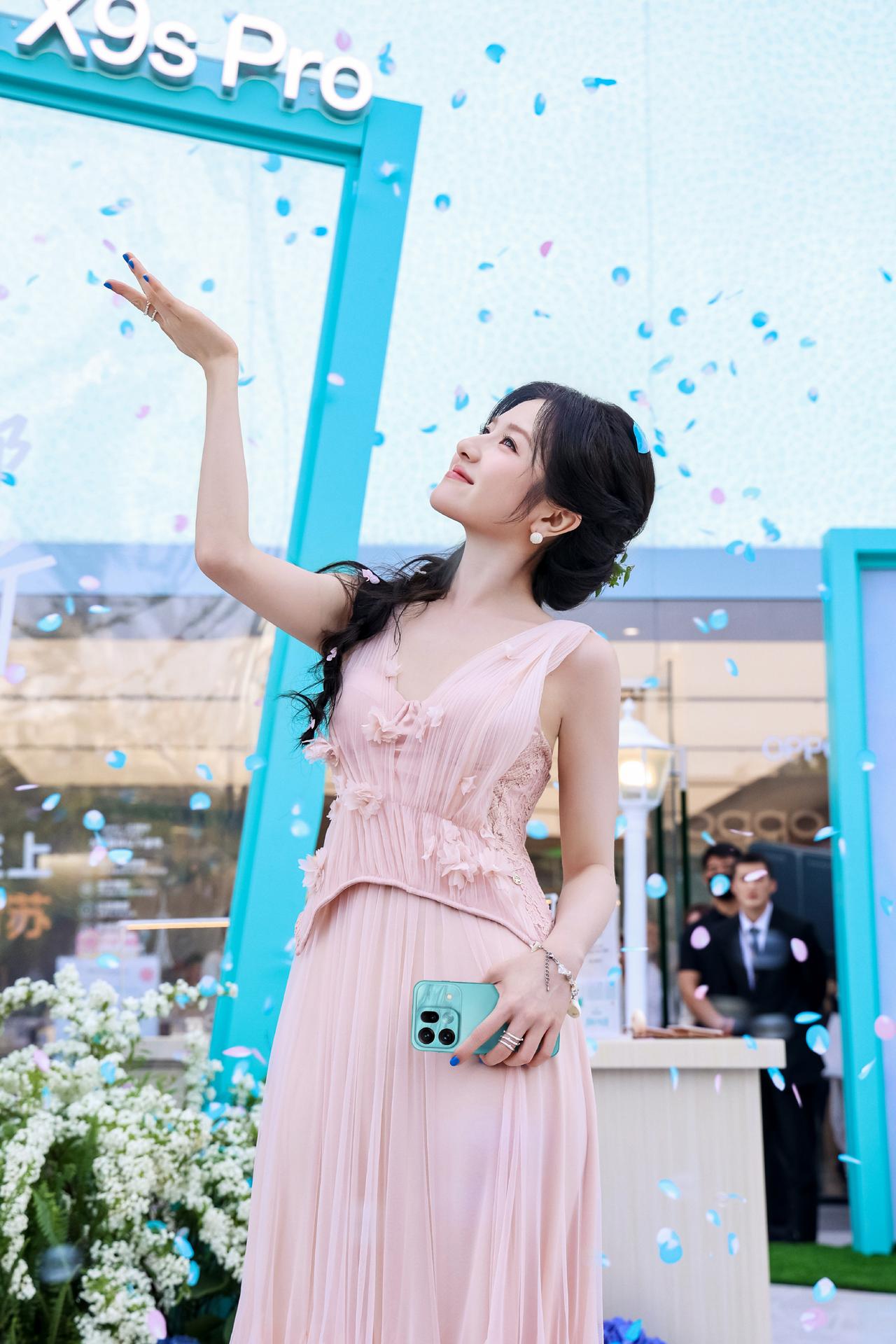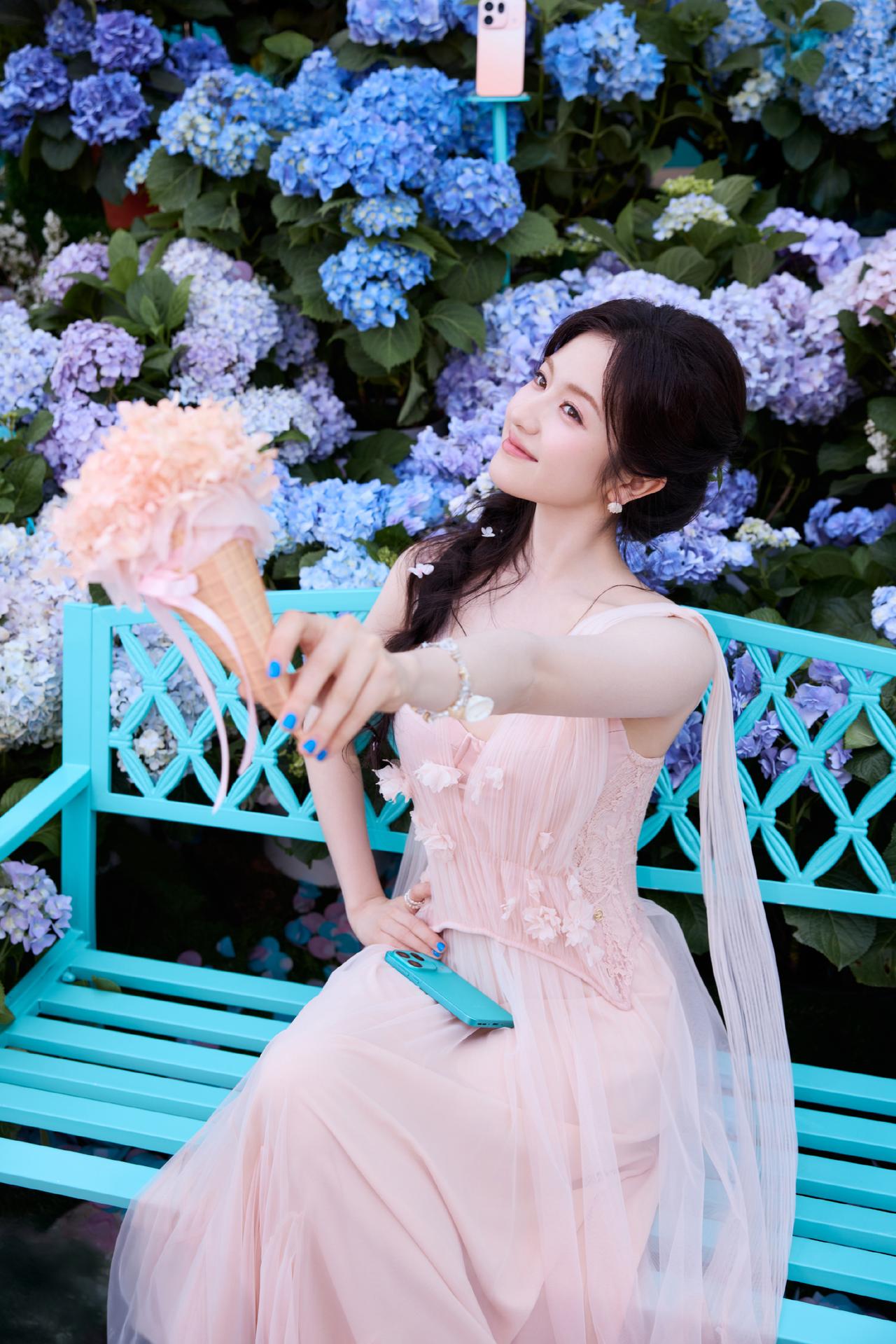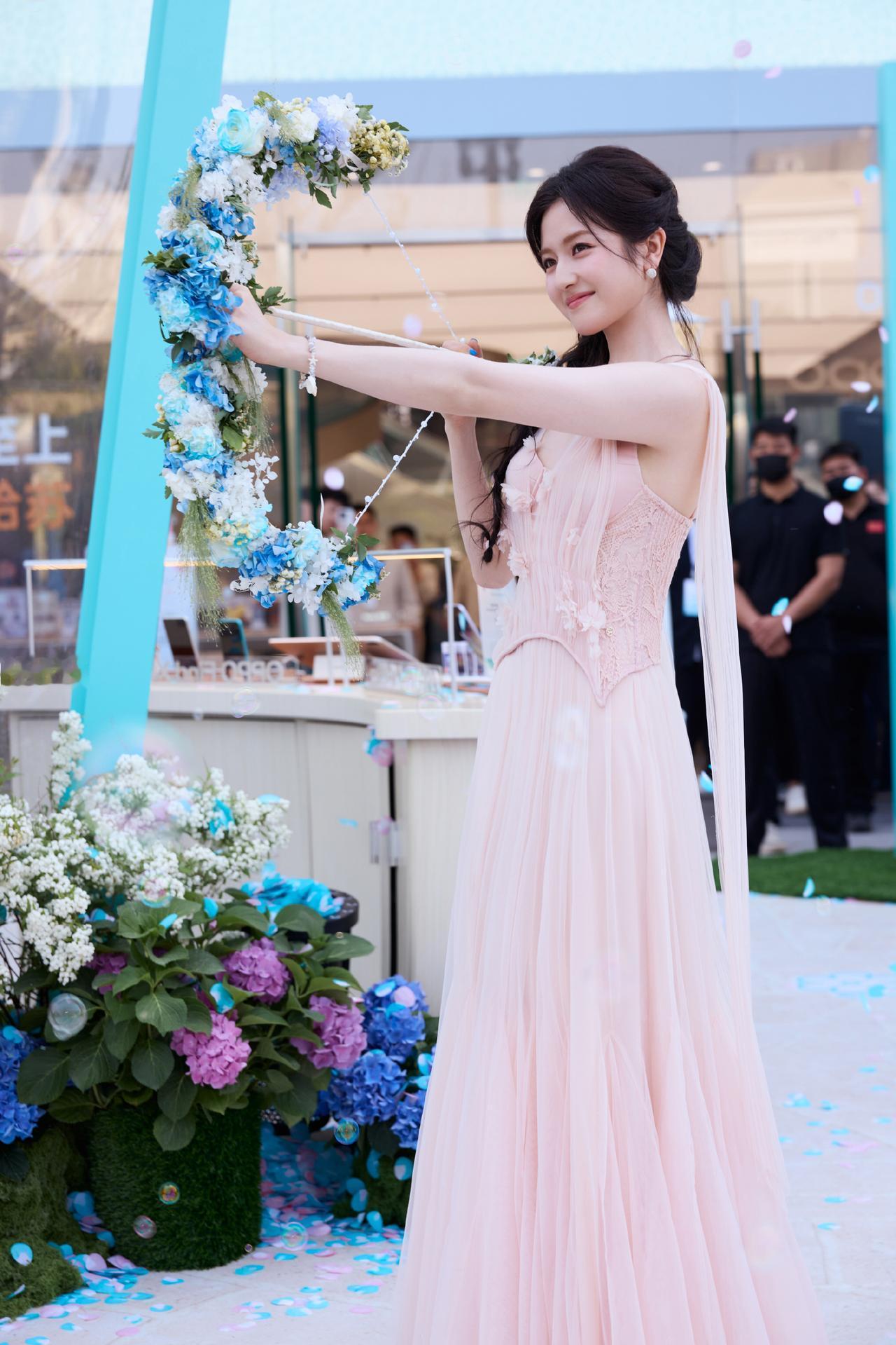 兰迪粉色裙装编发造型的惊艳颜值[飞吻] 李兰迪
