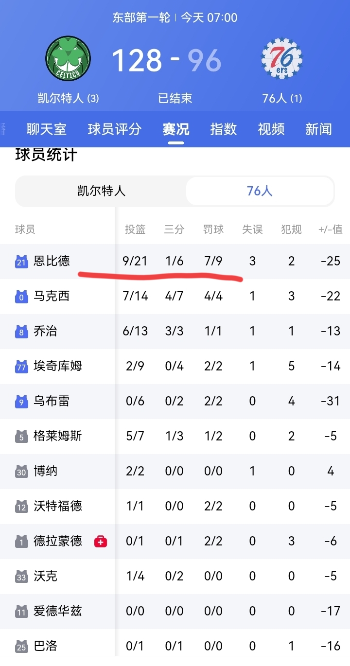 76人恩比德复出仍然无法阻止球队以96比128惨败给了凯尔特人!凯尔特...