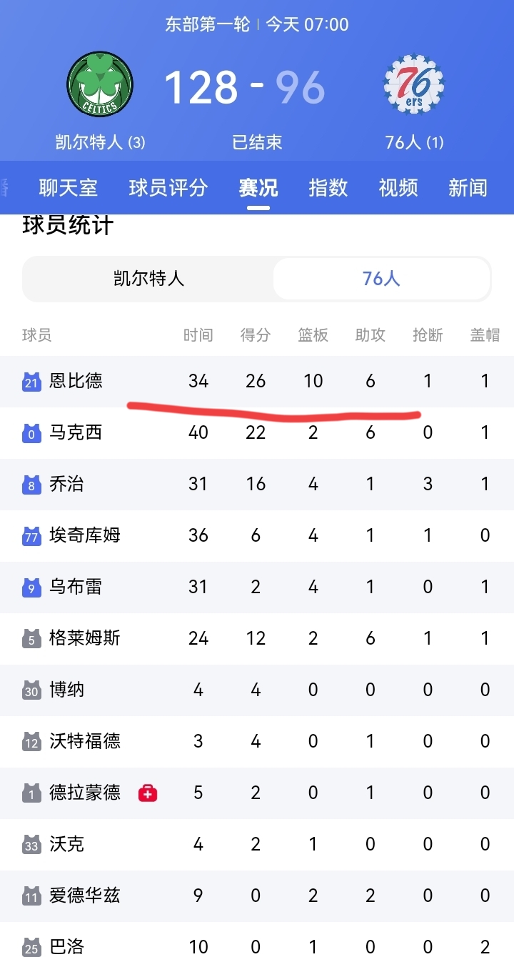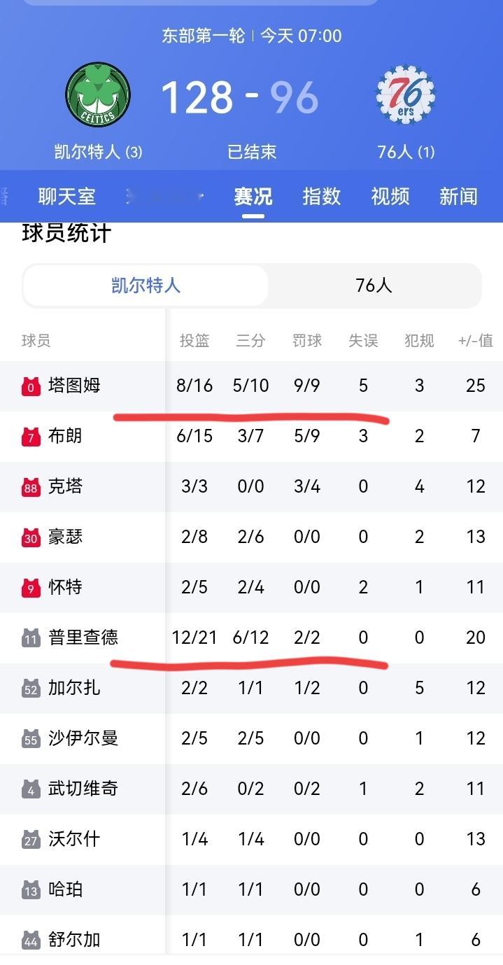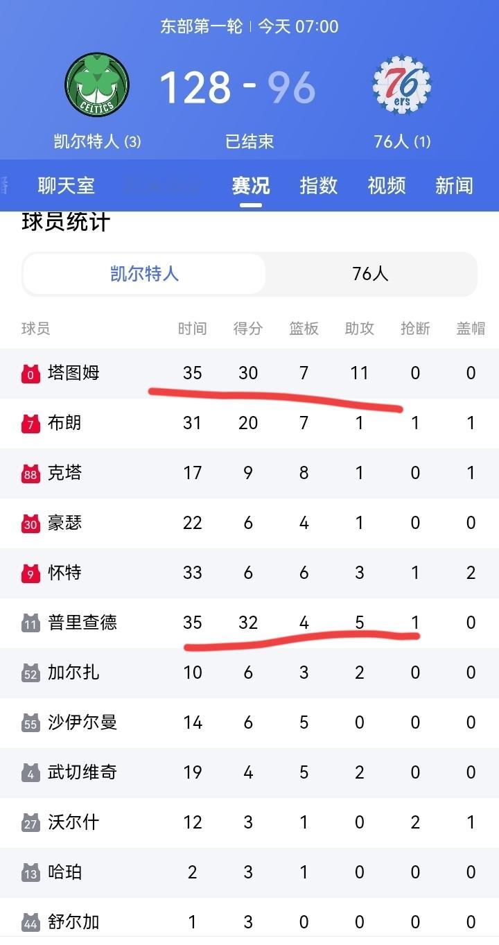 76人恩比德复出仍然无法阻止球队以96比128惨败给了凯尔特人!凯尔特人塔图姆和替补席的普里查德纷纷砍下30➕,是球队大胜的最大功臣!