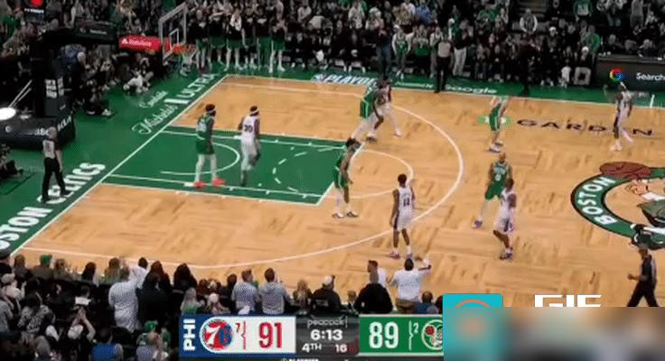 恩比德不在,没人想到会是埃奇库姆站出来。第二节,连着4记三分,单节就砍下16分,直接把凯尔特人主场打得鸦雀无声。