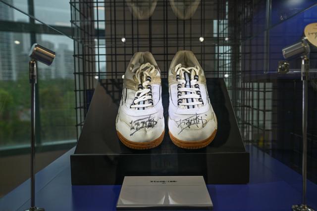展有一双上海乒乓名将王励勤的签名运动鞋