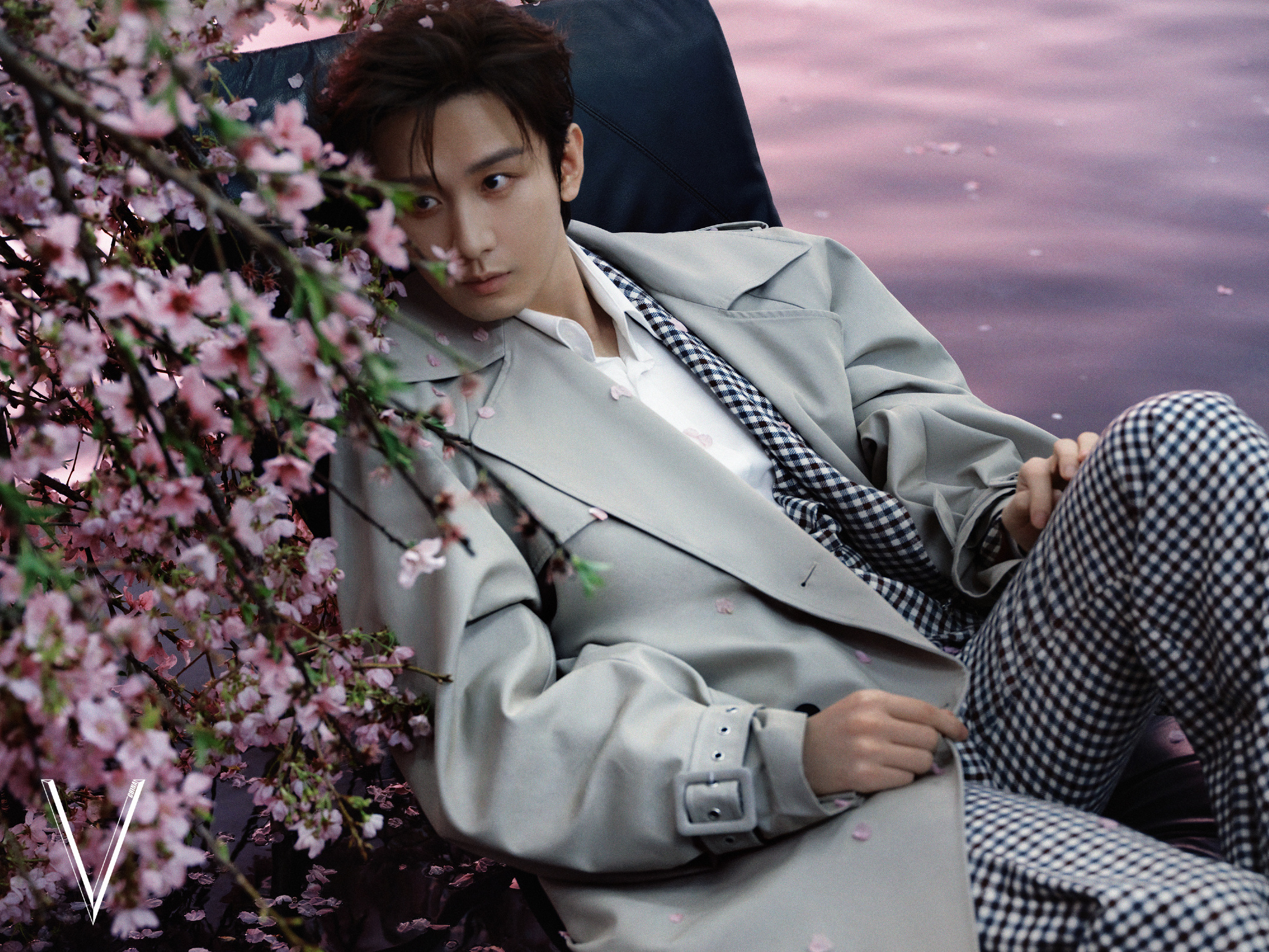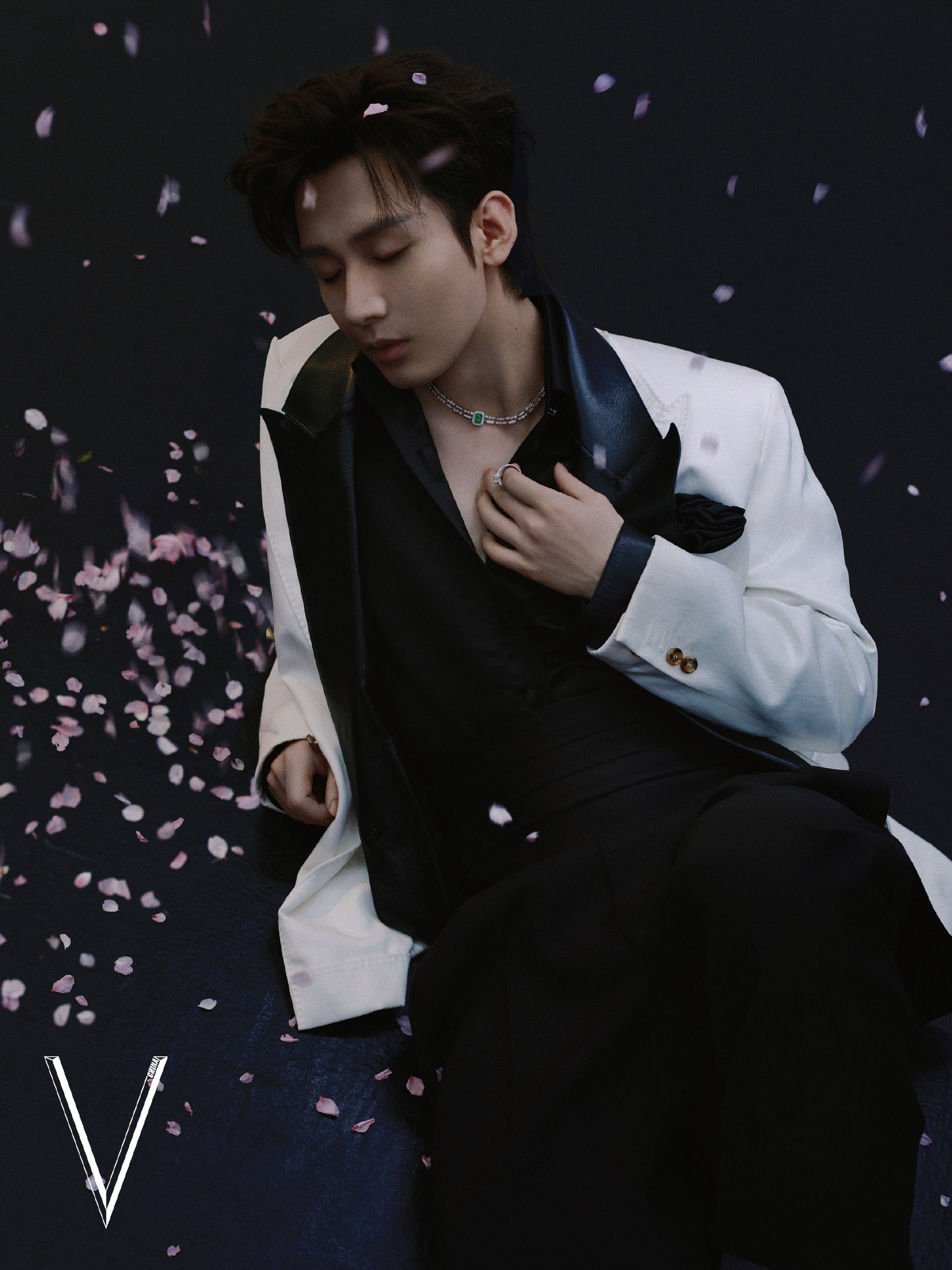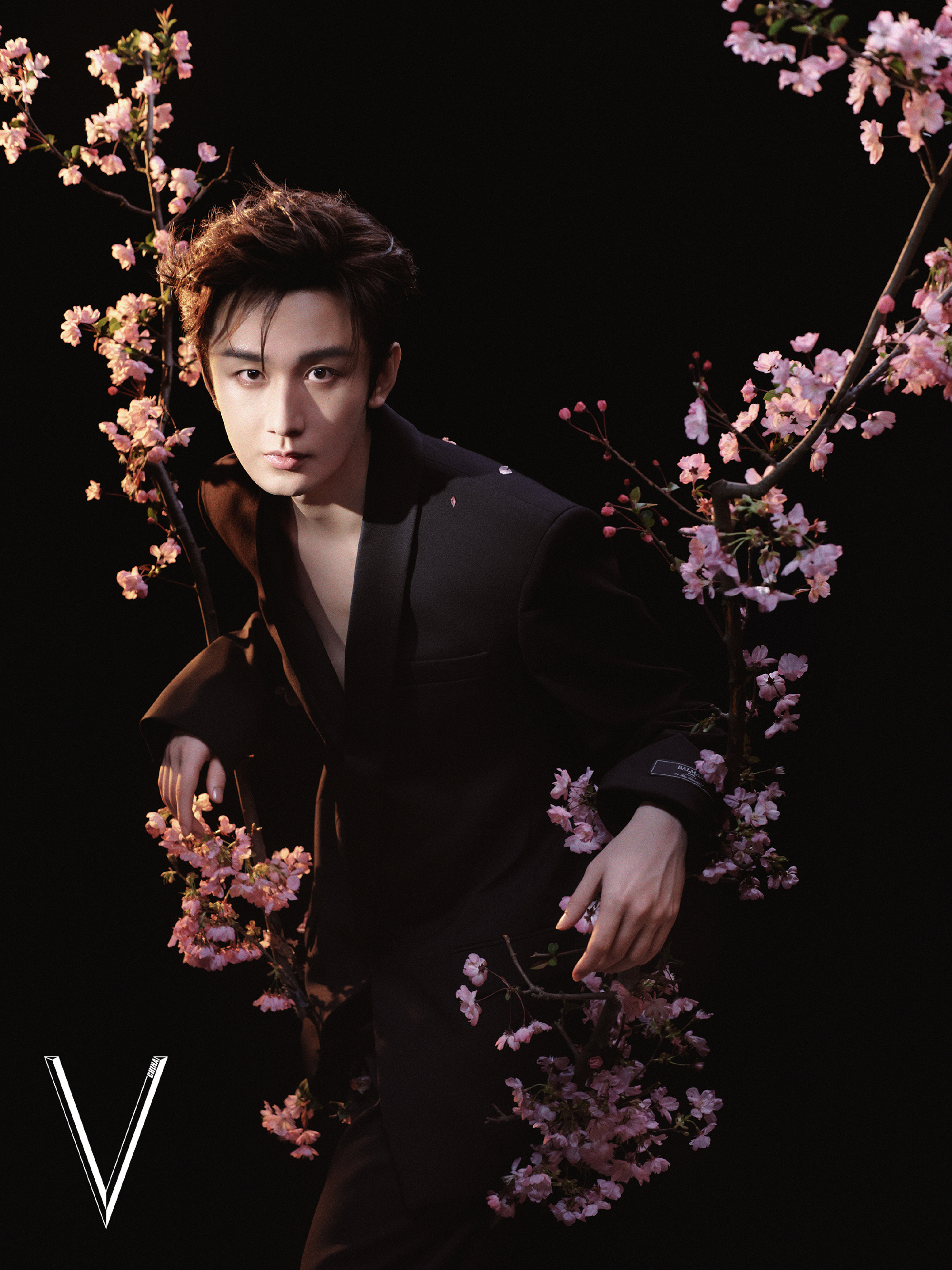 成毅微卷白毛 成毅V中文版五月刊封面大胆风格,微卷白毛搭配蓝色紧身衣好斯哈深V黑西装隐约可见腹肌性感的ee成毅紧身衣 成毅V中文版
