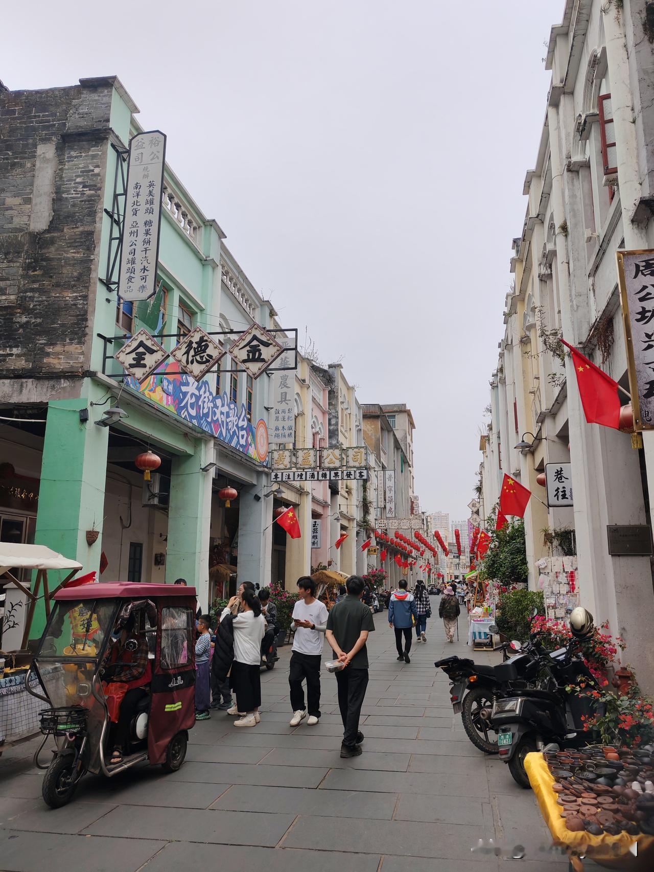 逛钦州老街真的很舒服,没有那种很商业化的感觉,就是很接地气的老城区。走在骑楼下,看着斑驳的老房子和旧招牌,特别有年代感,大多数房子是清朝时期或者民国初期的房子,保存得很好。路边小吃很多,猪脚粉、糖水都很实在,味道也地道。
