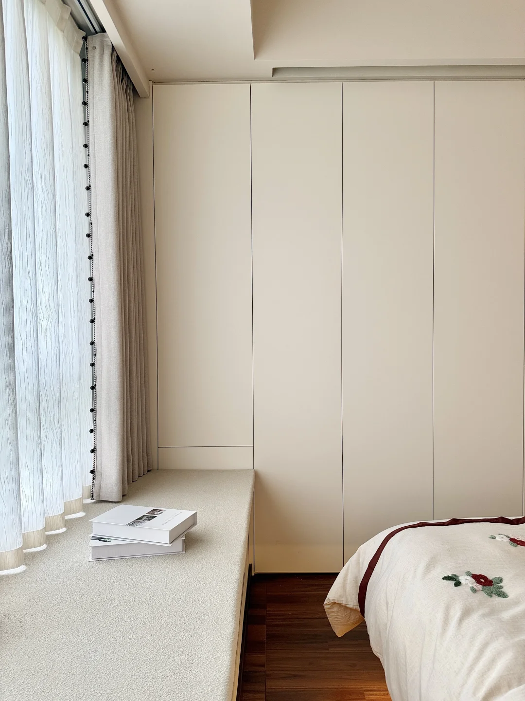 窗帘是直接做在飘窗上 让卧室空间显大一些